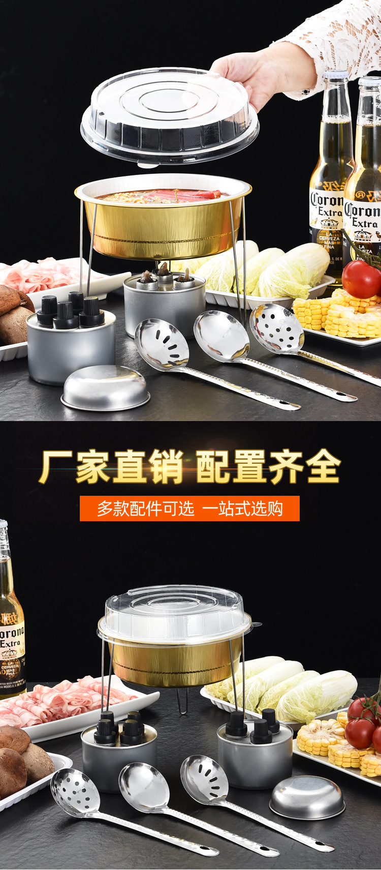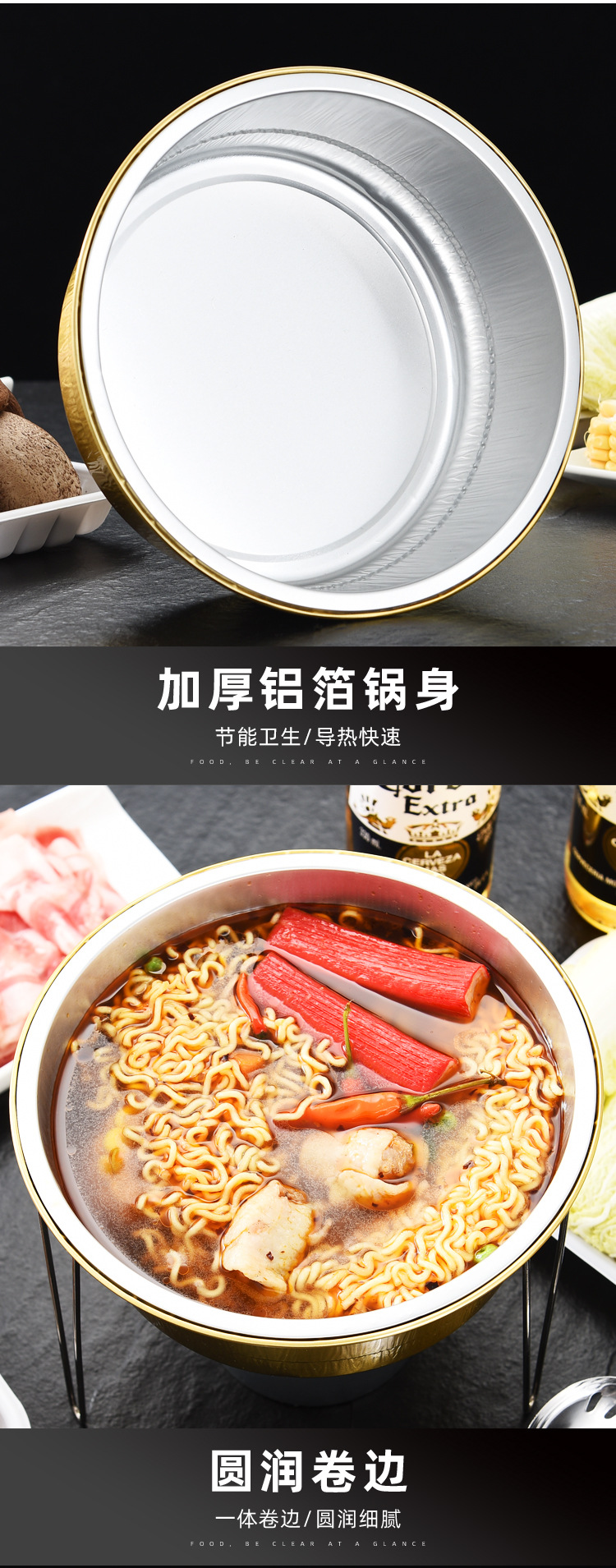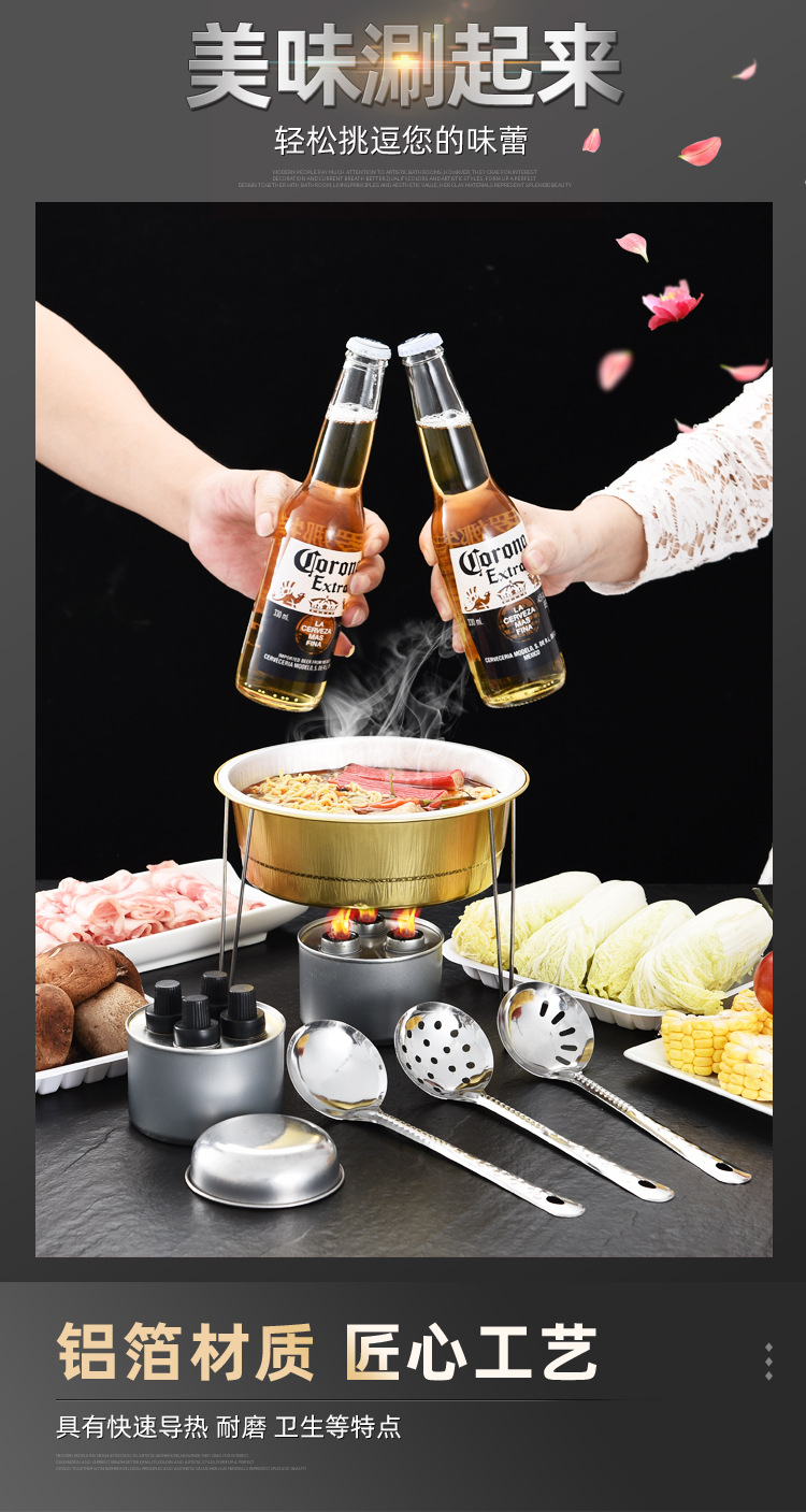厂家直供 户外烧烤小火锅铝箔餐盒圆形打包一次性锡纸锅外卖火锅