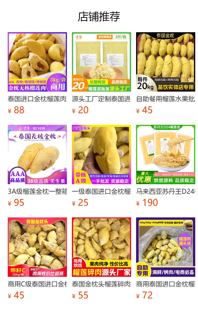 泰国金枕头榴莲肉 规格:20kg/箱 整箱批发