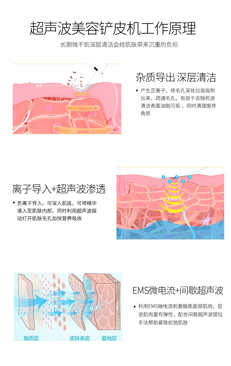 Электрическая ультразвуковая лопатка для удаления черных точек и мертвых клеток кожи