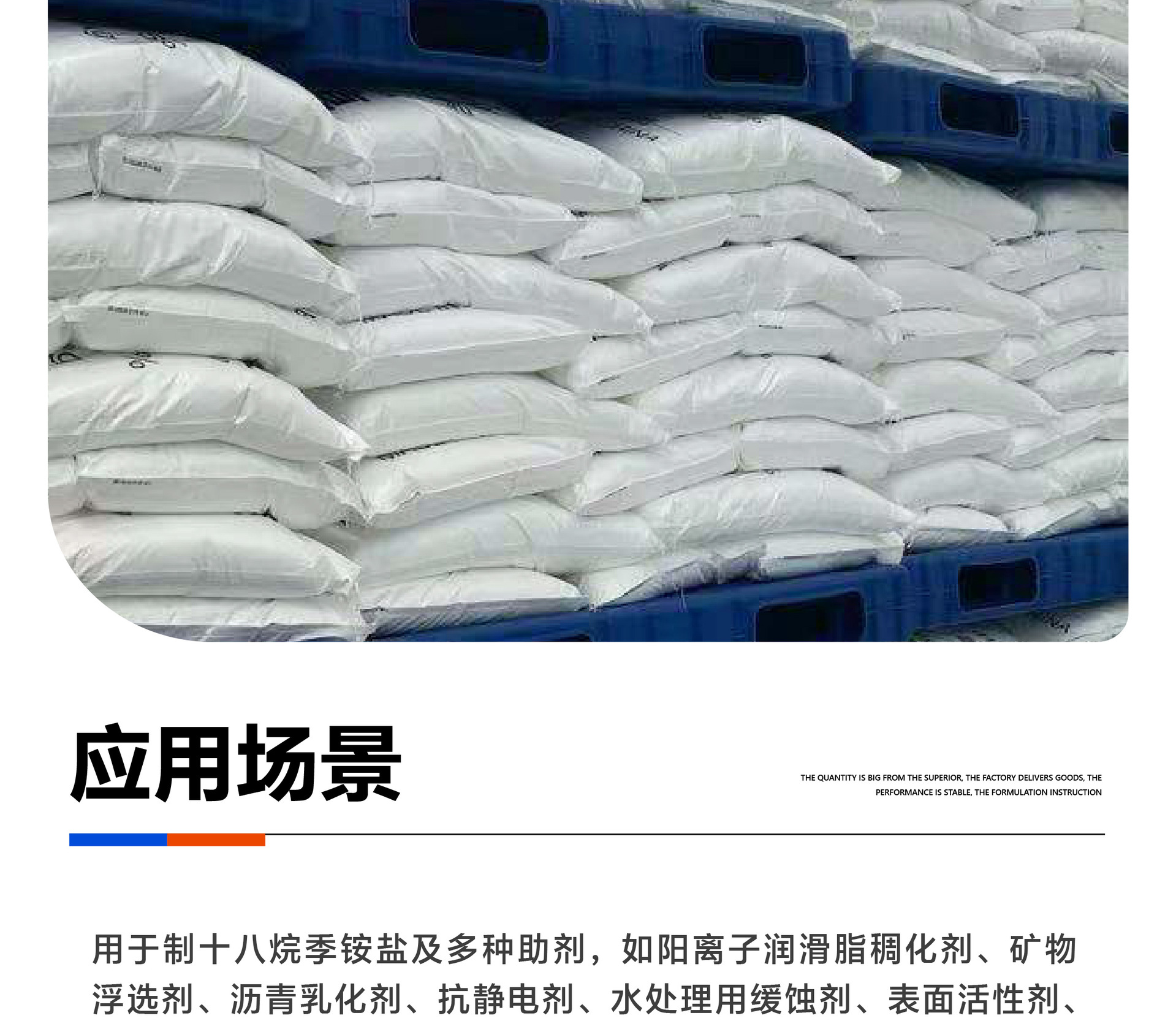 Производитель предлагает октадецилмин, поверхностно-активное вещество, детергент, минералосодержащий флотационный агент, эмульгатор для асфальта