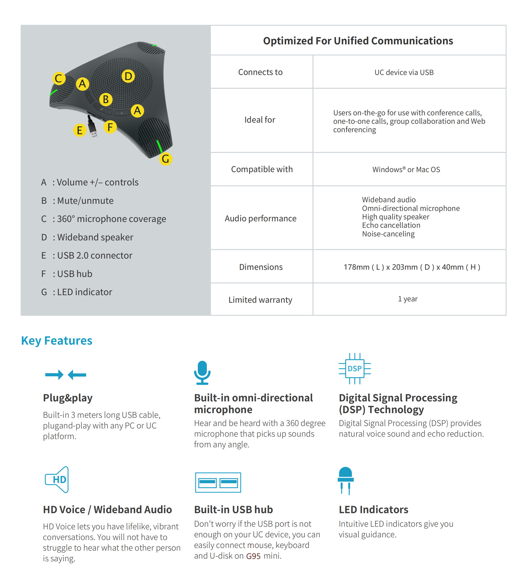 Портативный микрофон Pod Mini для видеоконференций с USB