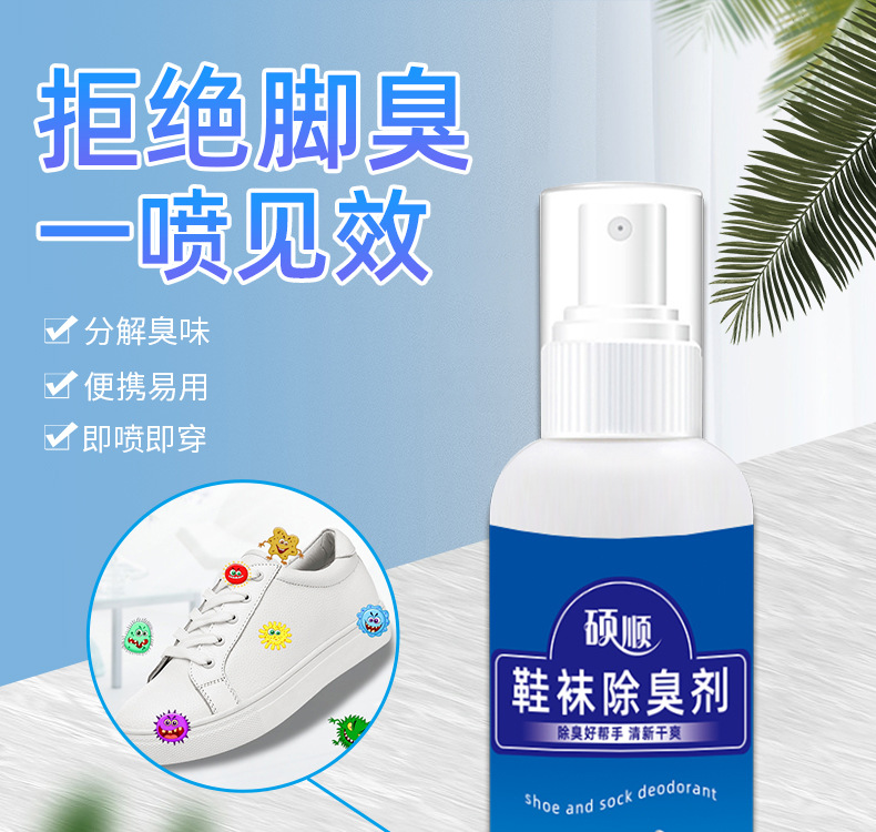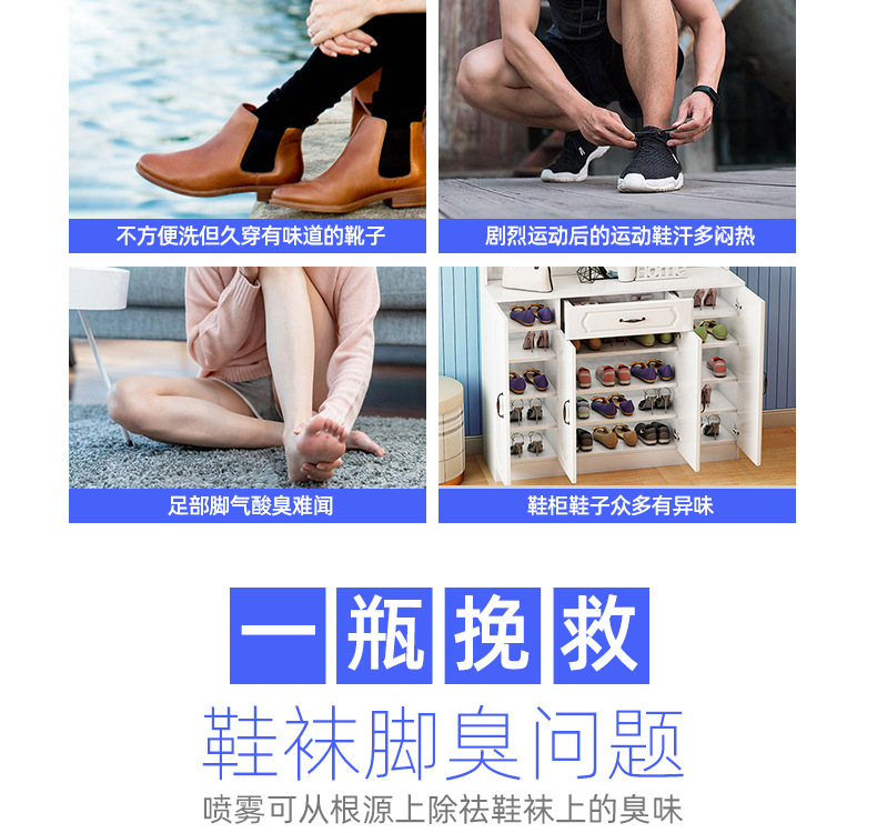 无论您是在正式场合还是休闲聚会,鞋袜除臭喷雾都能让您倍感自信。使用我们的产品,不仅能够消除鞋袜异味带来的尴尬,还能让您在人群中散发出清新的气息。让您的自信从细节中体现出来,赢得更多赞誉与尊重!