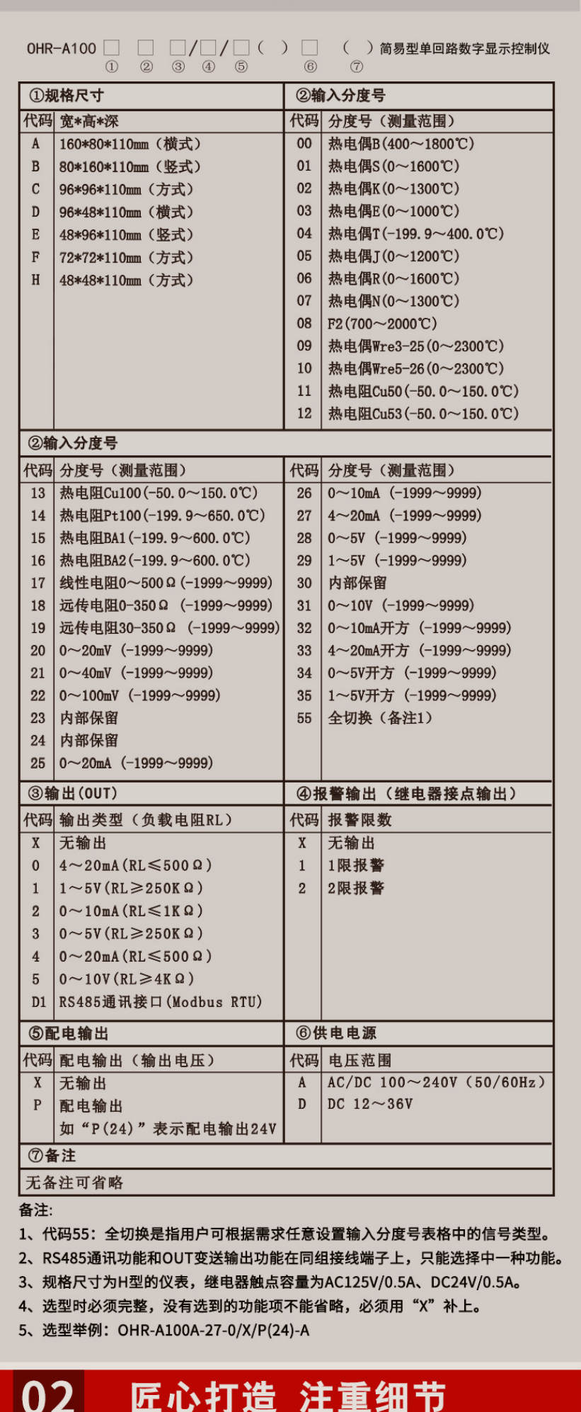 ★ OHR-A100型号的热电阻\热电偶信号分辨率可切换:1℃或0.1℃;OHR-A104型号的信号分辨率为1℃。