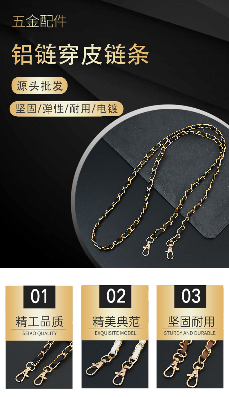 Кожаная цепочка для сумки, металлическая собачья пряжка, алюминиевая цепочка для сумки, плечевой ремень, ремень для кожаной сумки