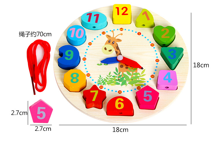 Деревянные цифровые часы для детей, игрушка с геометрическими формами и будильником