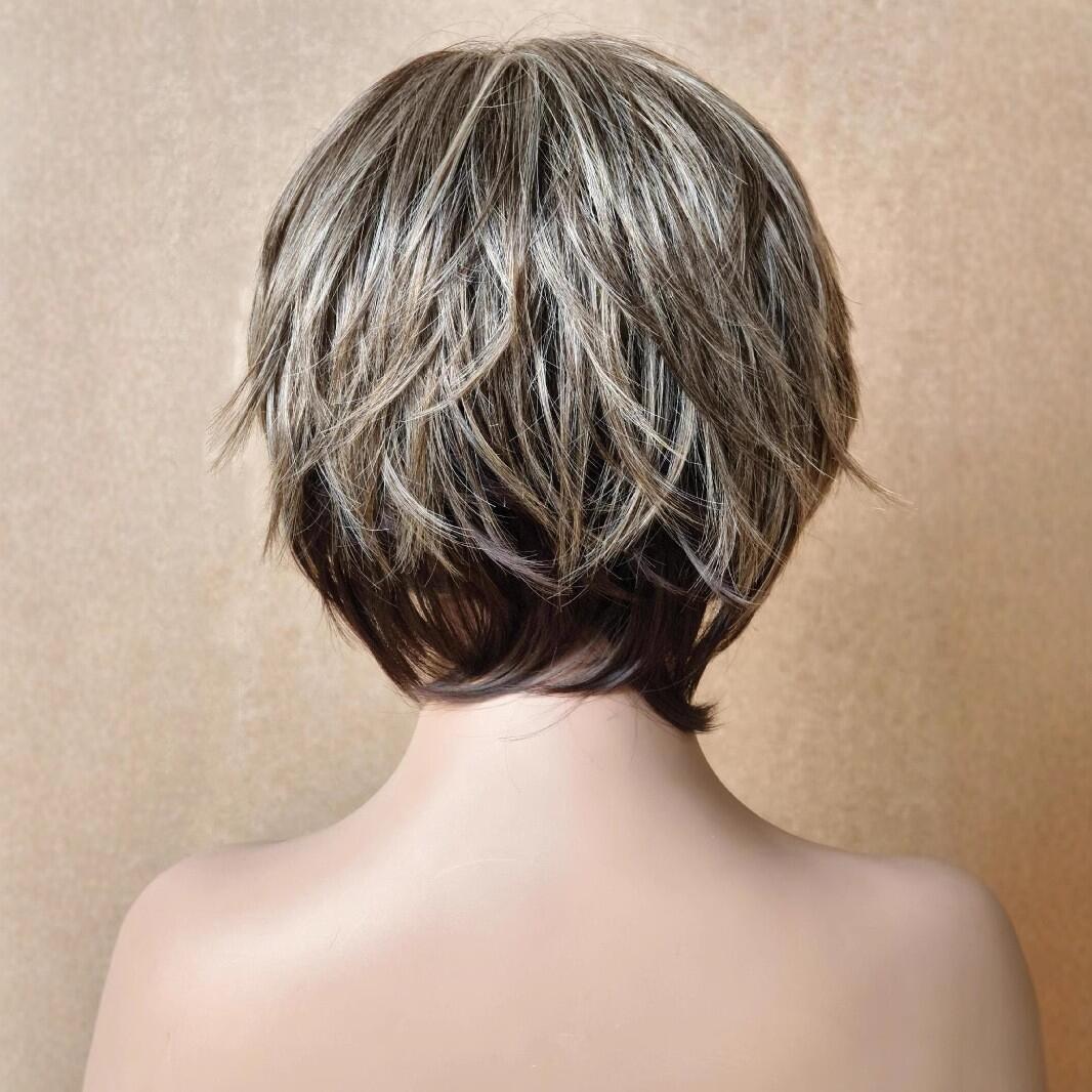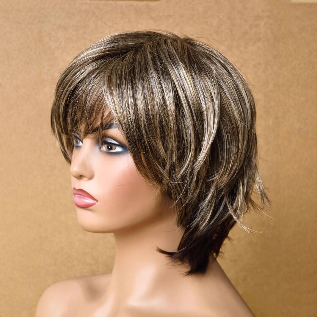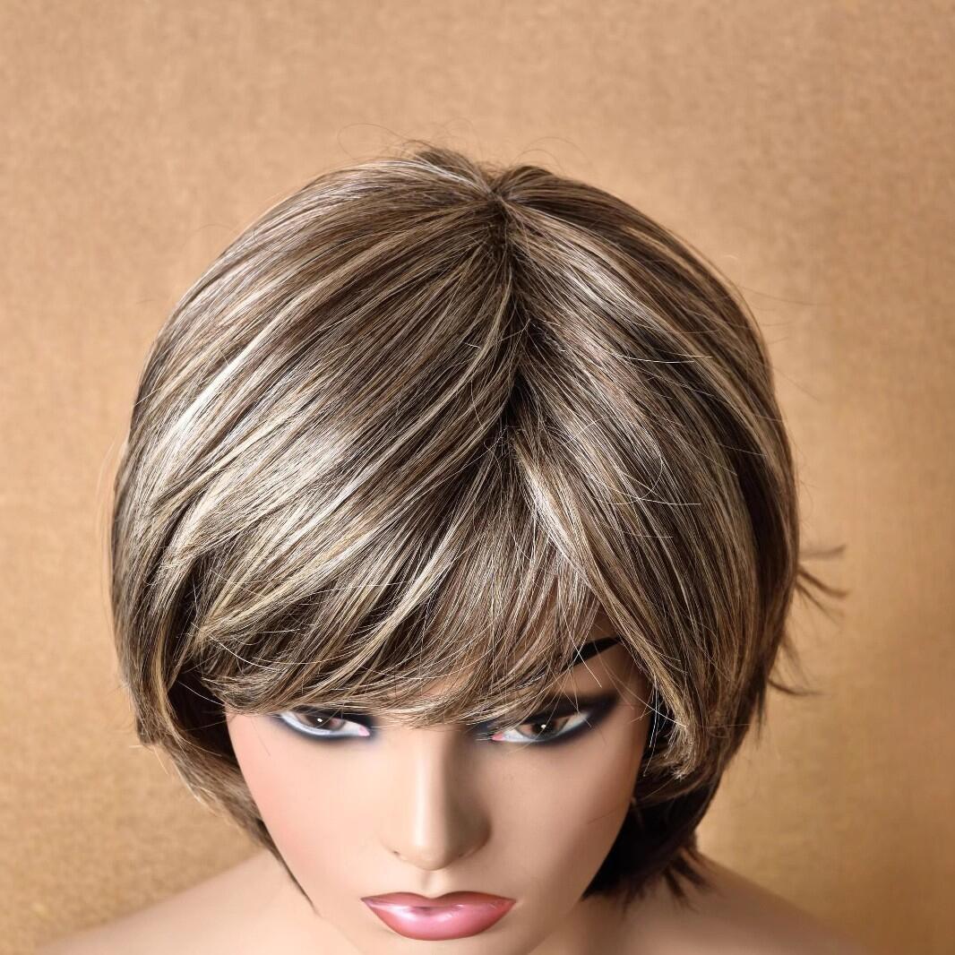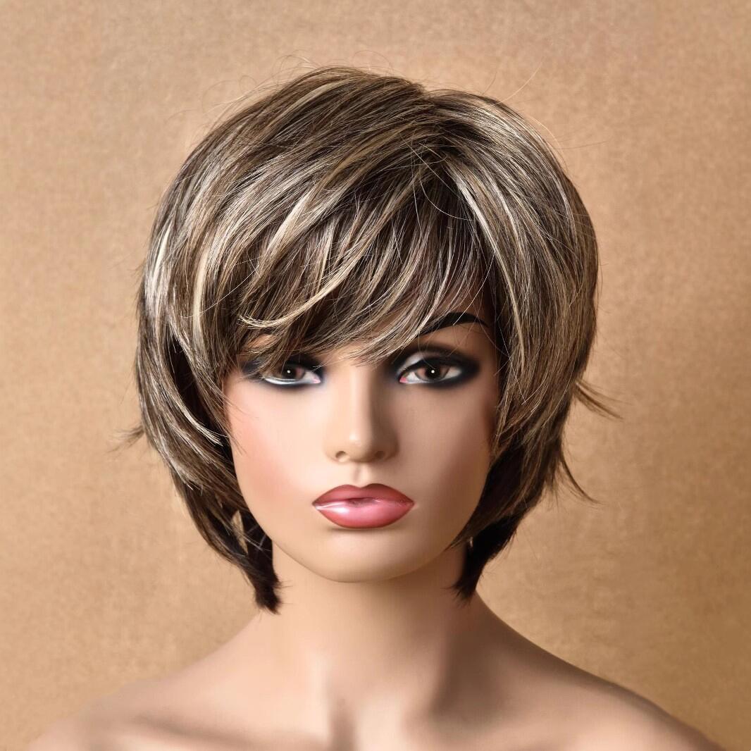 Лучшие модные парики для женщин, прямая смешанная окраска, короткие волосы, парик с челкой, прямая прическа от производителя