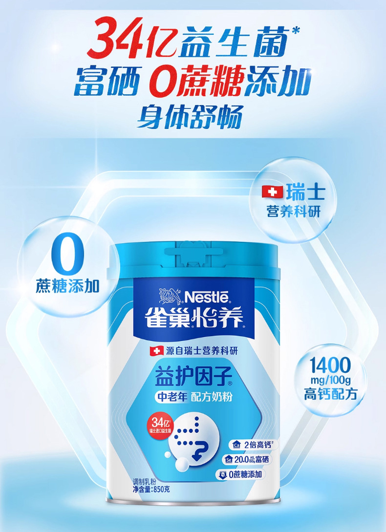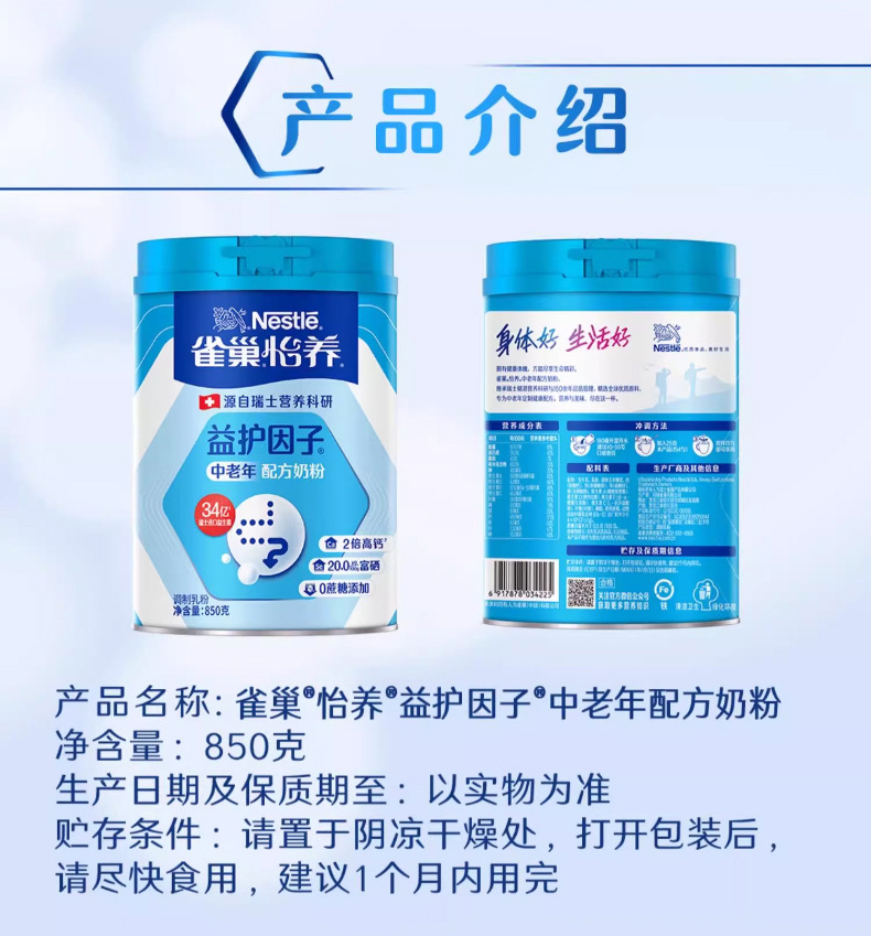 Молочный порошок Nestlé Yiyang для людей среднего и пожилого возраста, 850г, без добавления сахара, пробиотики, с высоким содержанием кальция, подарок для родителей и пожилых людей
