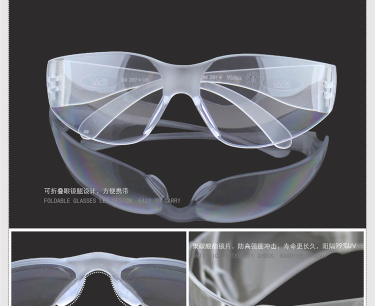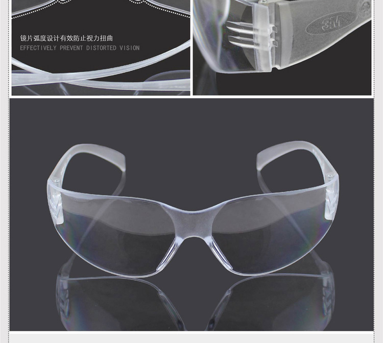 3M11228经济型防护眼镜防尘防风防冲击安全化学透明劳保护目镜