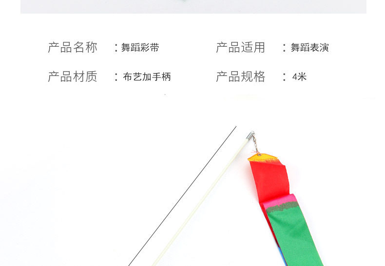 【尺寸】:彩带长 4米、宽 5厘米 、 杆子长0.5米 、手柄长15厘米