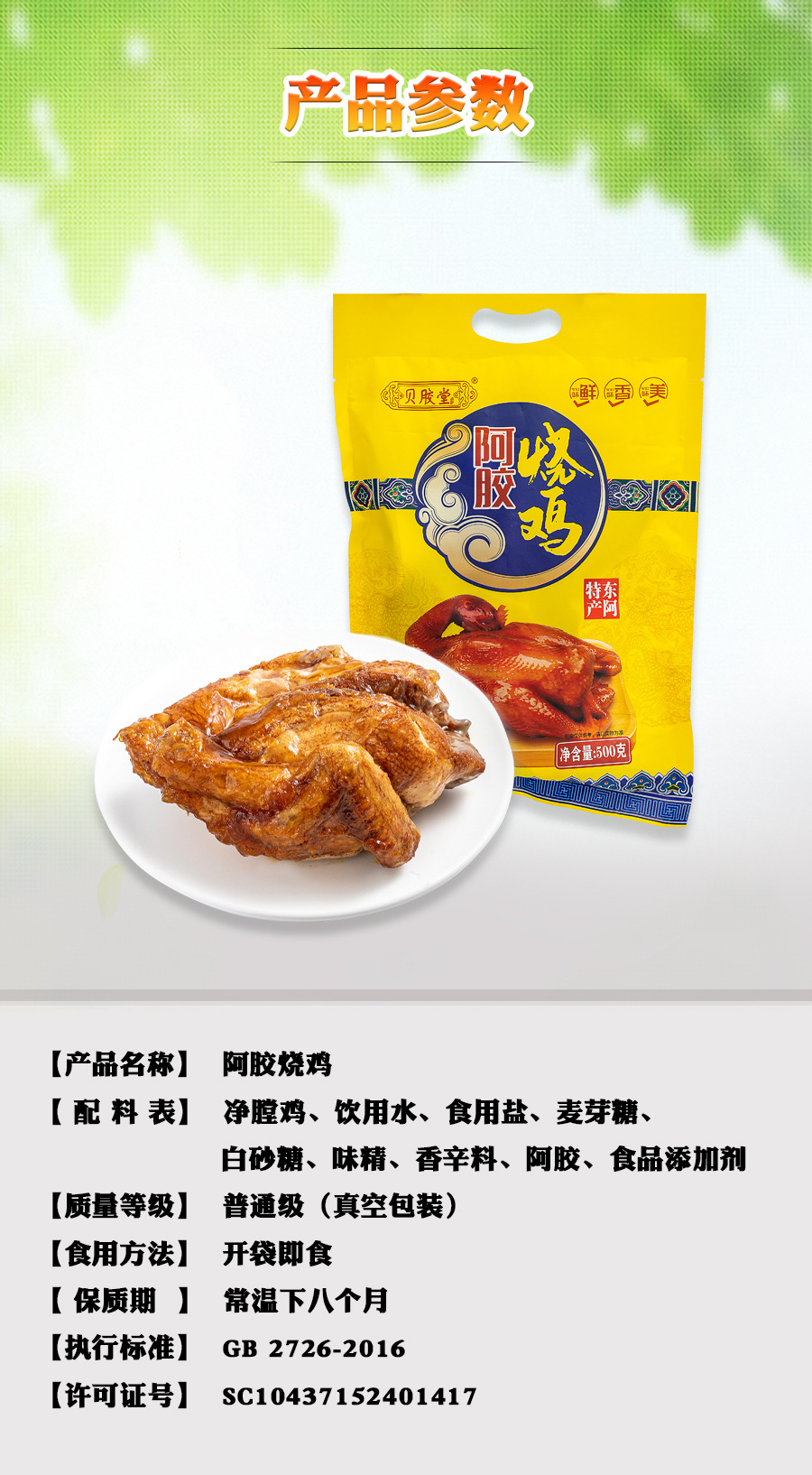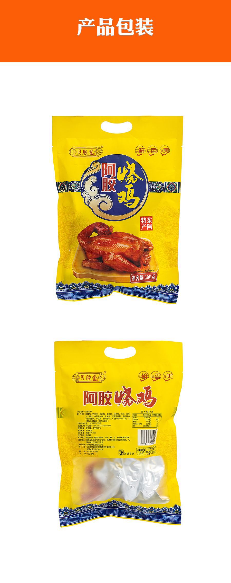 Гелатин из ослиной кожи с тушеной курицей 500г, вакуумная упаковка, готовая еда, специальная еда Шаньдун, прямая поставка