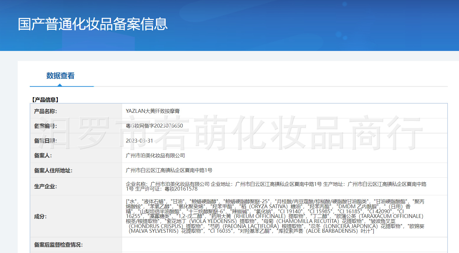 Номер сертификата регистрации несpecial косметики Guangdong g makeup network preparation word2023076650