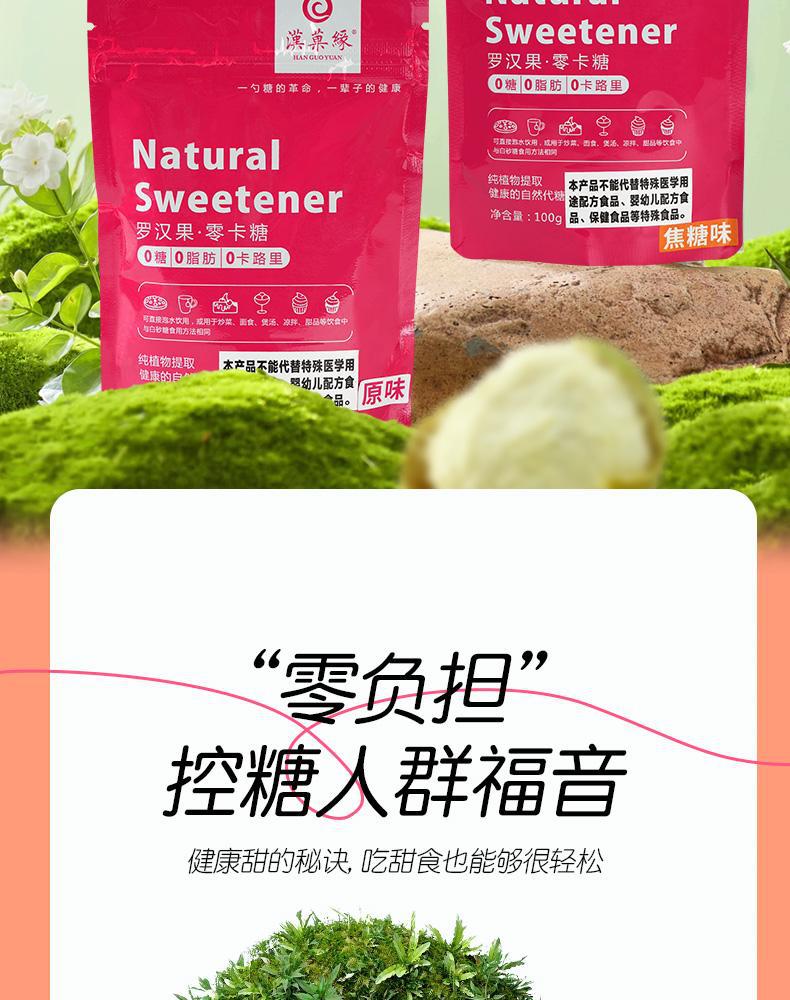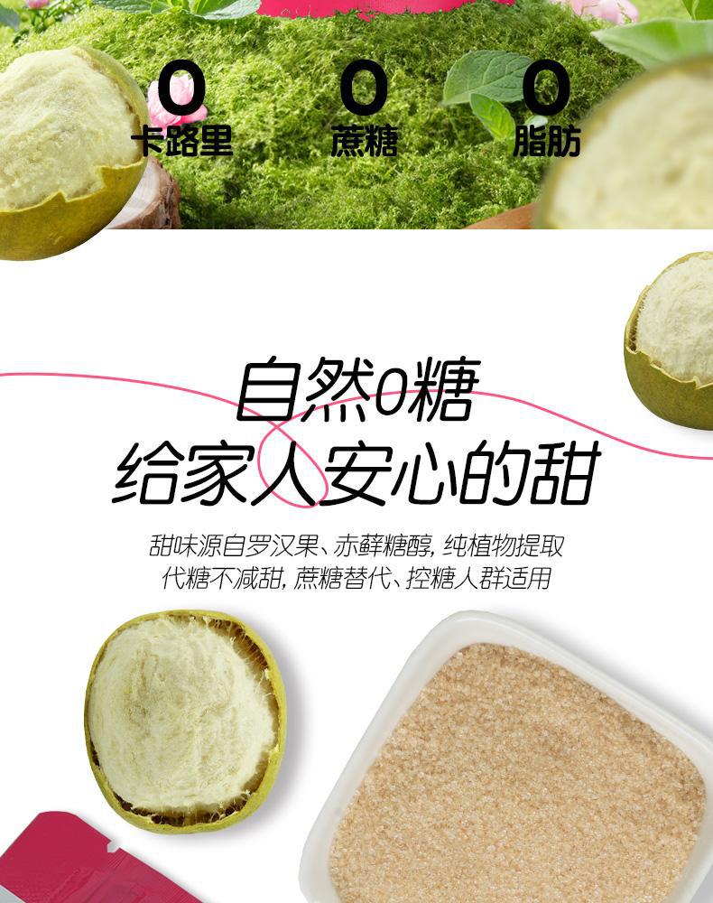 配料:赤藓糖醇、罗汉果粉、甜菊糖苷