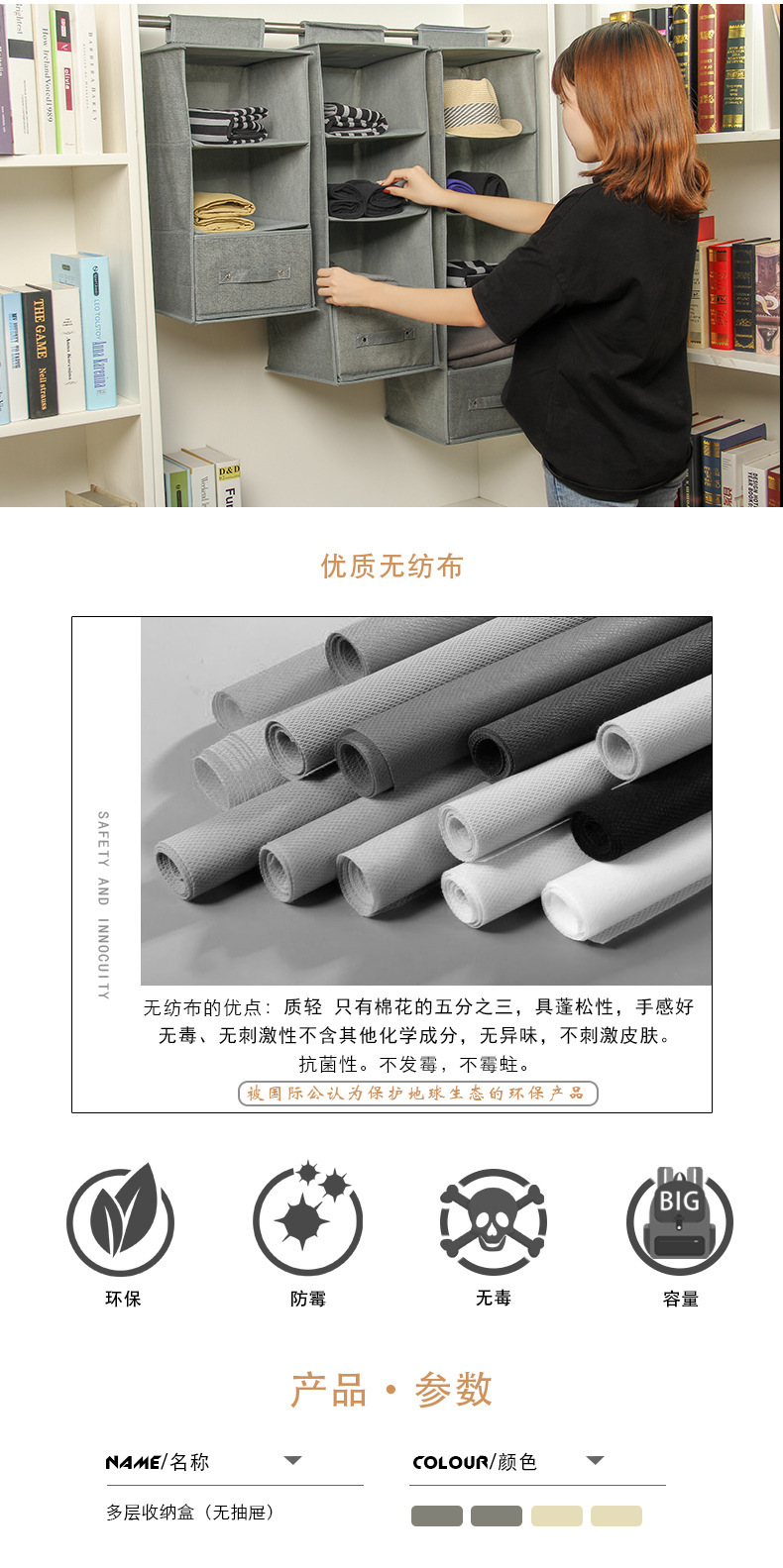 Многоуровневый шкаф для хранения с висячей сумкой для одежды в спальне Многоуровневая вешалка для хранения