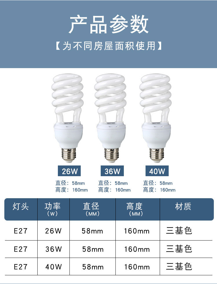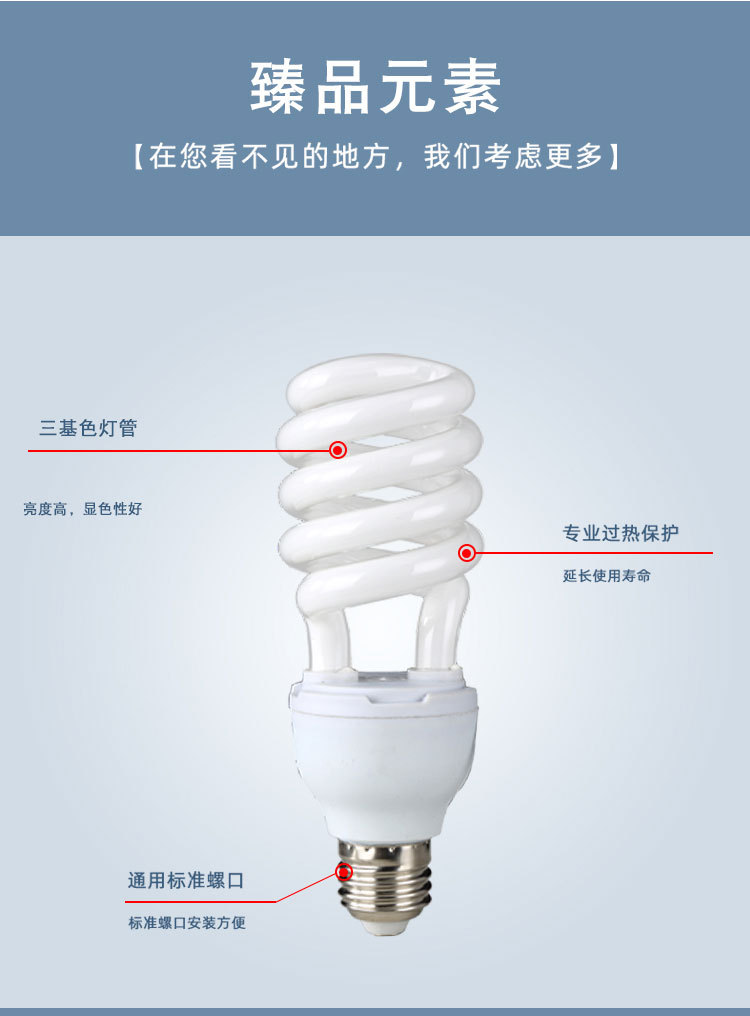 Оптовая продажа энергосберегающей лампы, трёхцветная, мощная, полувинтовая, спиральная лампа, стеклянная трубка для дома