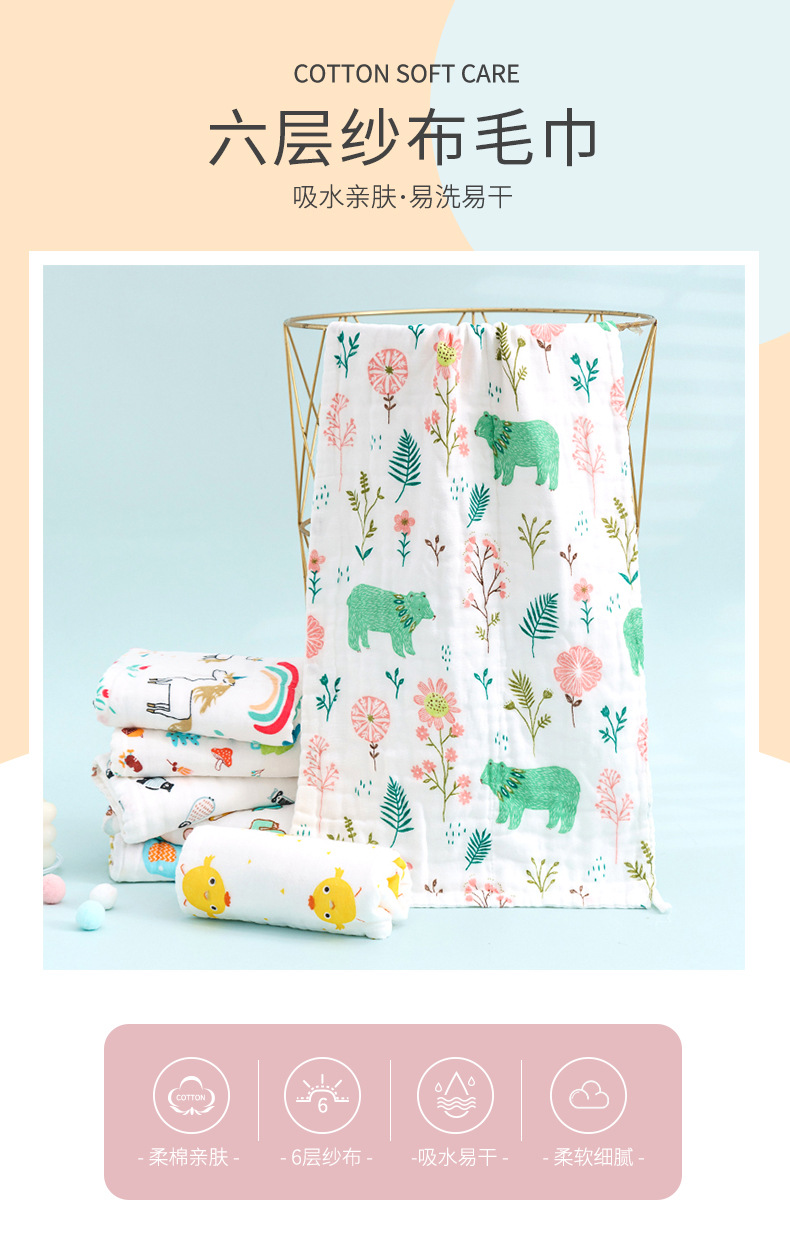 Шестислойное большое полотенце 35*75 см для детей, высокоплотное, детское полотенце для ванной