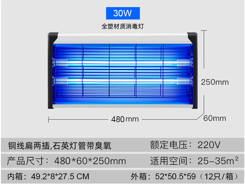 Кросс-бордерная настенная УФ-лампа, 40W, синий свет, для детских садов