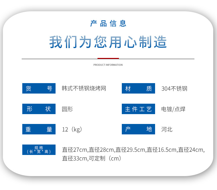 Корейская оцинкованная сетка для барбекю, круглая сетка из нержавеющей стали, оптовая продажа многоразмерной сетки для барбекю