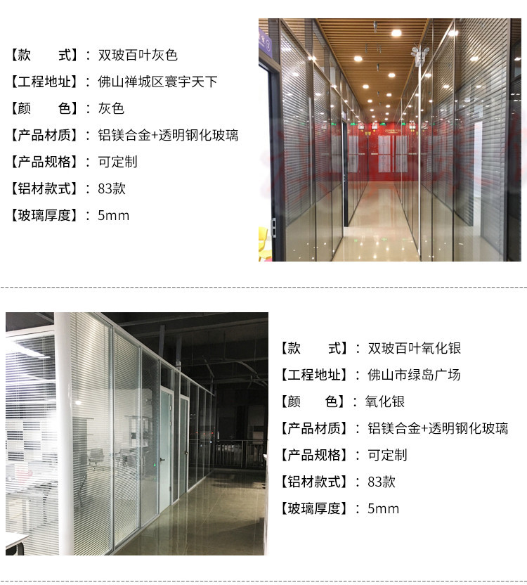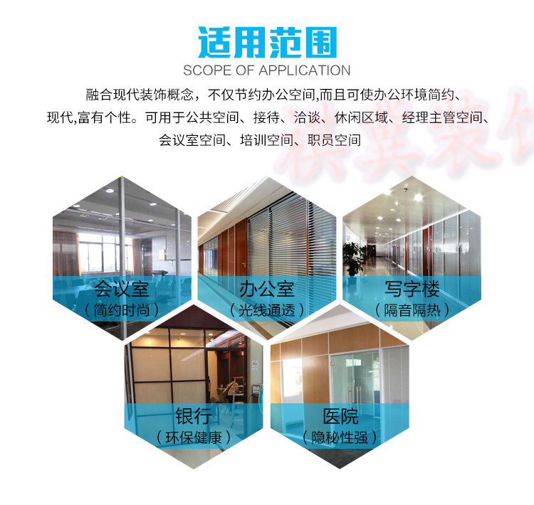Стеклянная перегородка из алюминиевого сплава двойного слоя с полыми жалюзи закаленная матовая огнестойкая звукоизолированная комната