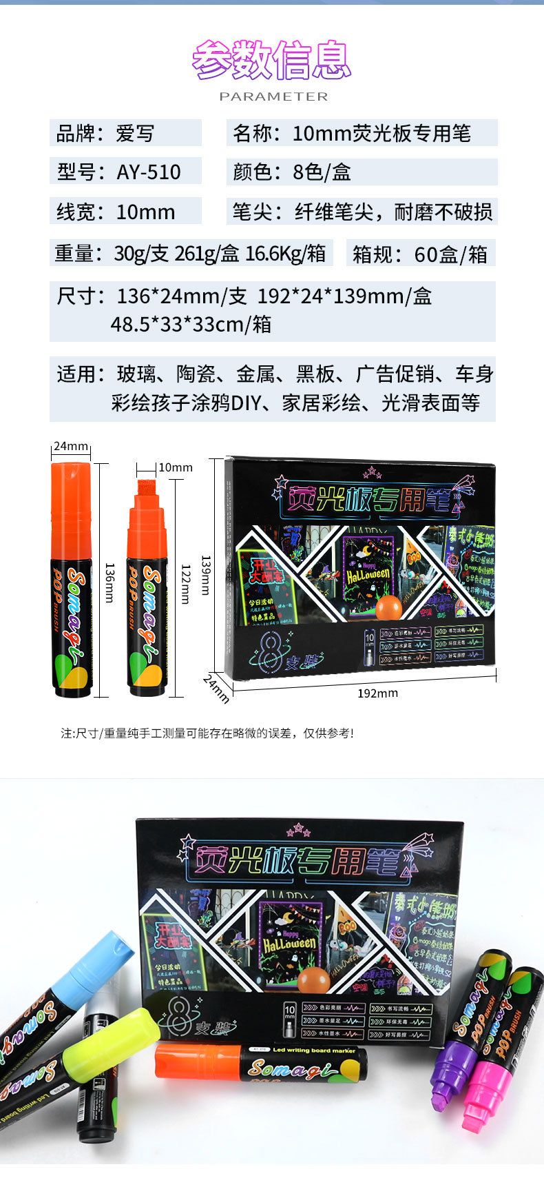 Цветной маркер Aiye, стираемый, рекламный маркер для доски, большой объем, ручка для рисования на черной доске
