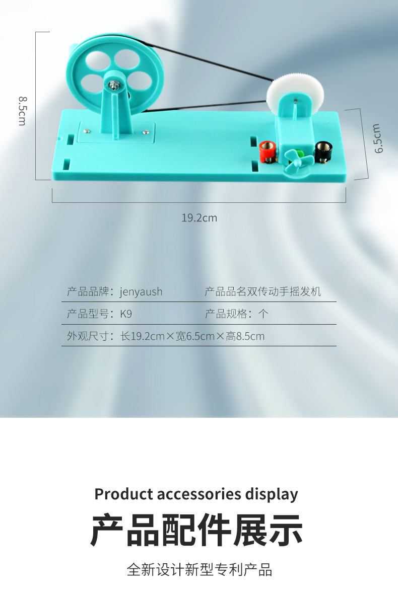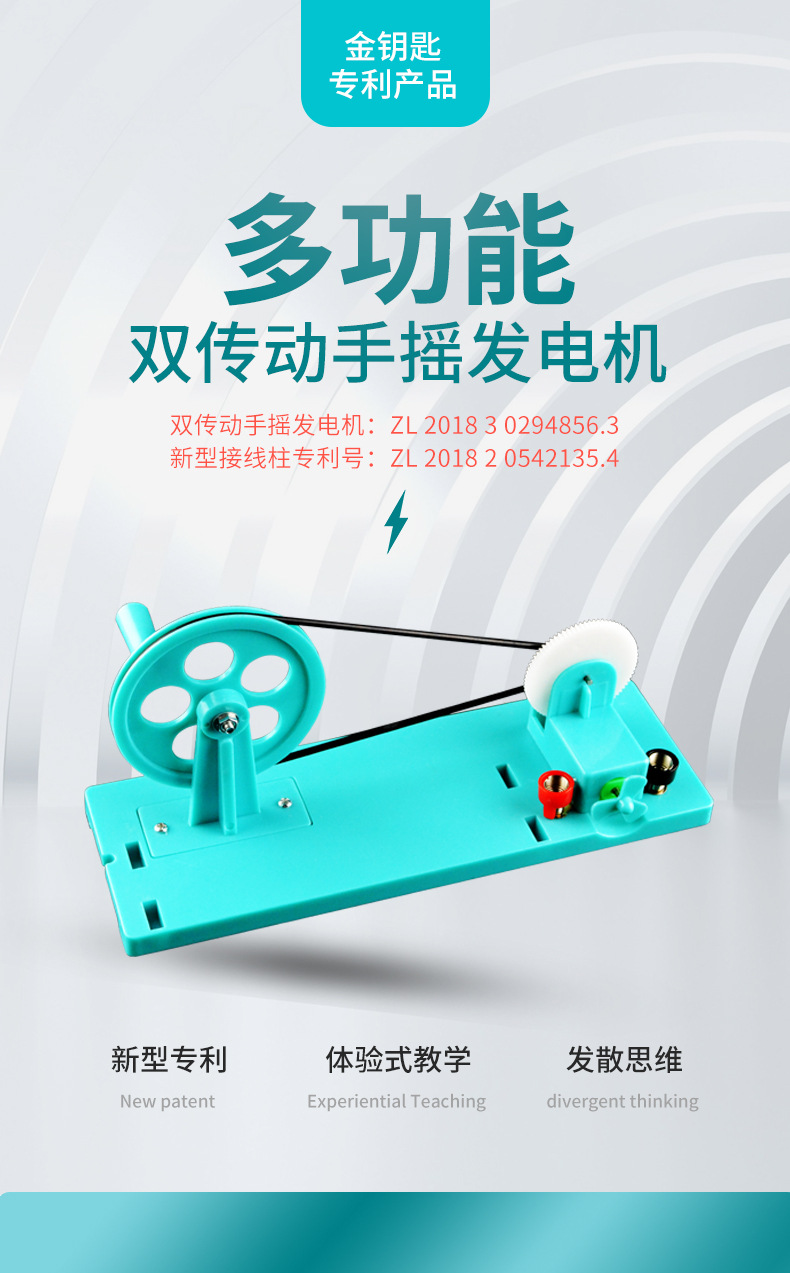 Обладнання для фізичних експериментів для учнів середньої школи, генератор з подвійною передачею, ручний генератор, освітлення маленької лампочки