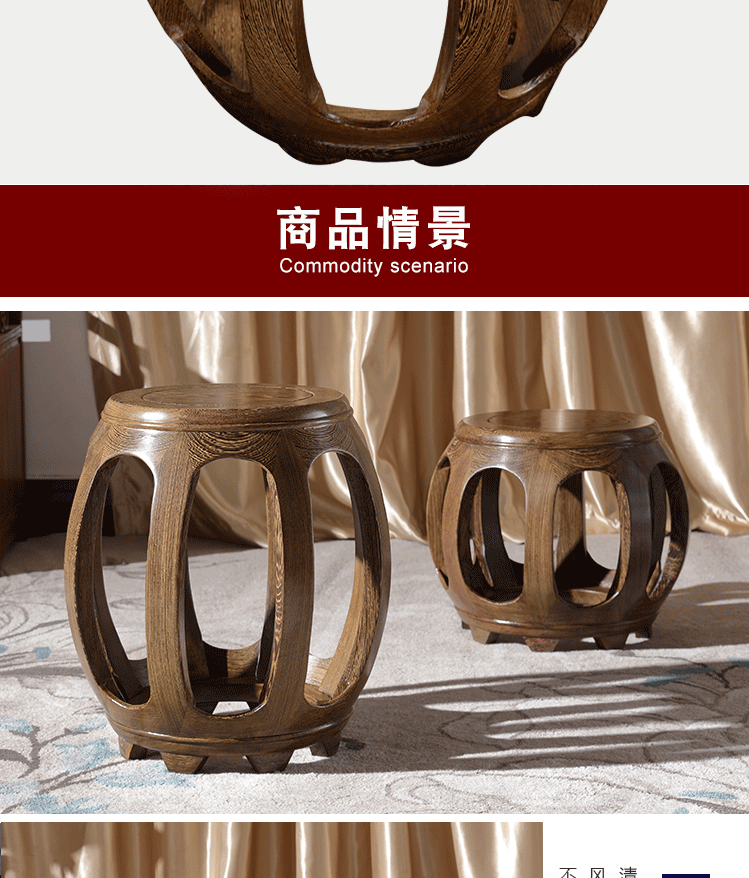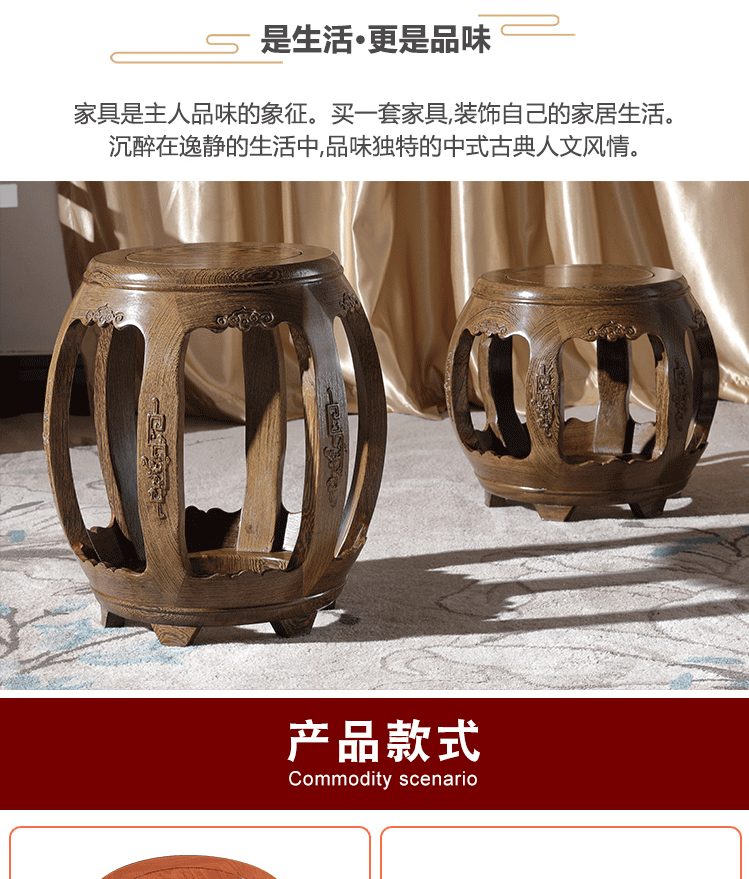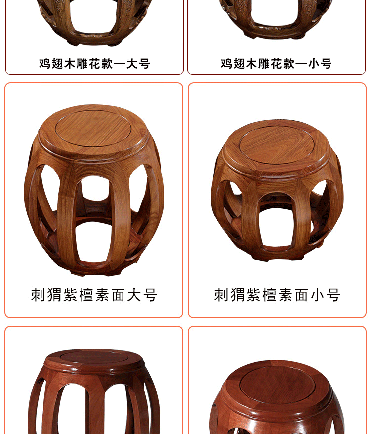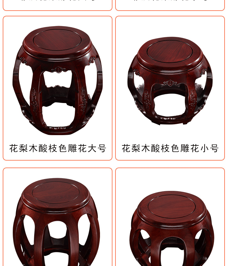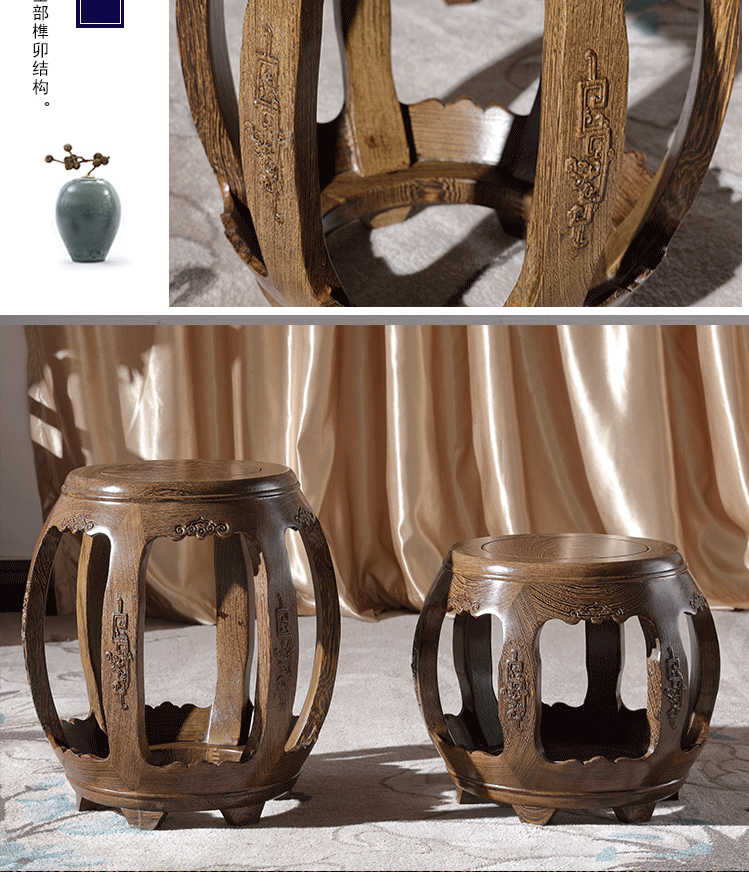 Круглый табурет из дерева куриных крыльев, антикварный табурет из массива дерева для гуциня, табурет для смены обуви из розового дерева, печатный барабанный табурет, маленький табурет для гостиной, табурет для пианино