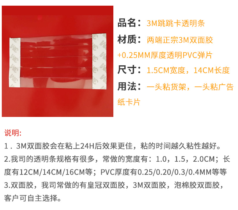 本链接默认的跳跳卡透明条规格:1.5CM*14CM