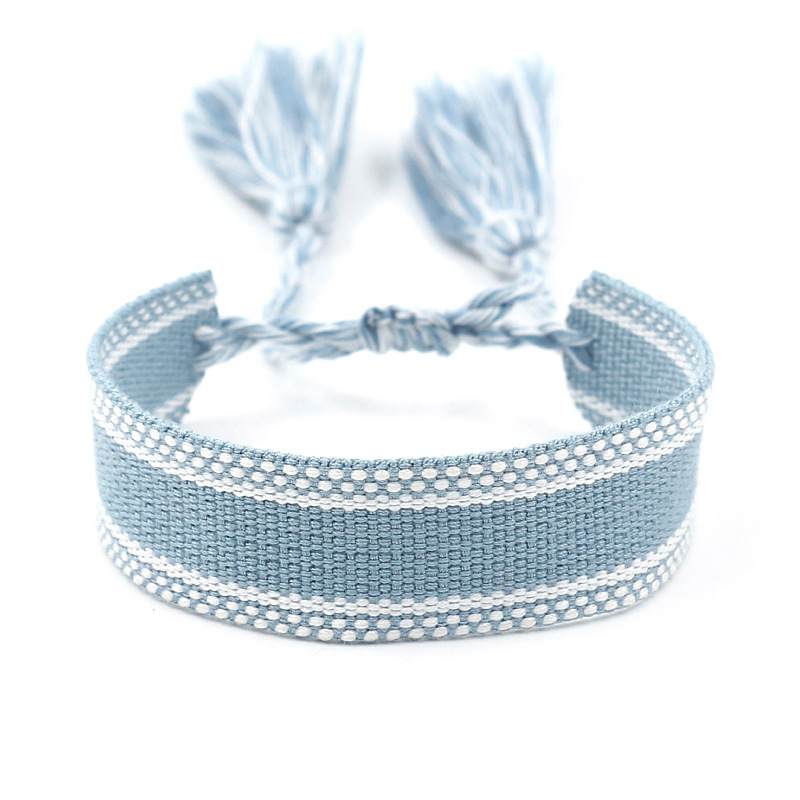 【品名】: 001#-100#空白可定制文字织带流苏手腕带 (可按潘通色号定制织带颜色,尺寸,花纹,另可定制字母,LOGO刺绣,烫钻,烫片等) 【材质】:涤纶(质感很感) 【货号】:HM2104-34 【颜色】:260个现有颜色款式可以选择 【尺寸】:宽2cm,织带长约14.5-24.5CM(尺寸可定制) 【净重】: 4-5克 【包装:】: 单条透明塑料袋包装,12条装一个大袋(可定制包装) ------------------------------------------------------------------------------------------------------------- 因不同的计量方法,尺寸和克重会有细微差异,此种状况并非商品质量问题。