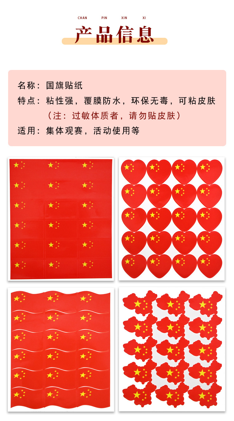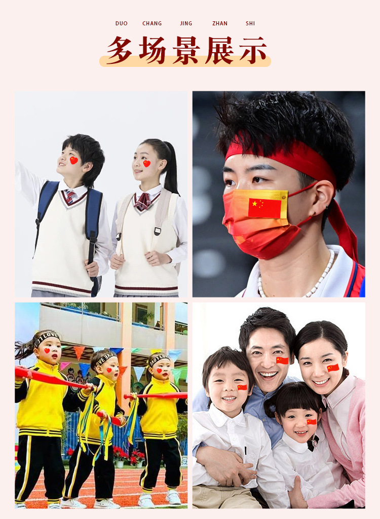 Наклейка с национальным флагом, наклейка на лицо, маленький флаг Китая, декор для мероприятий