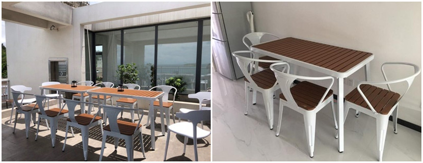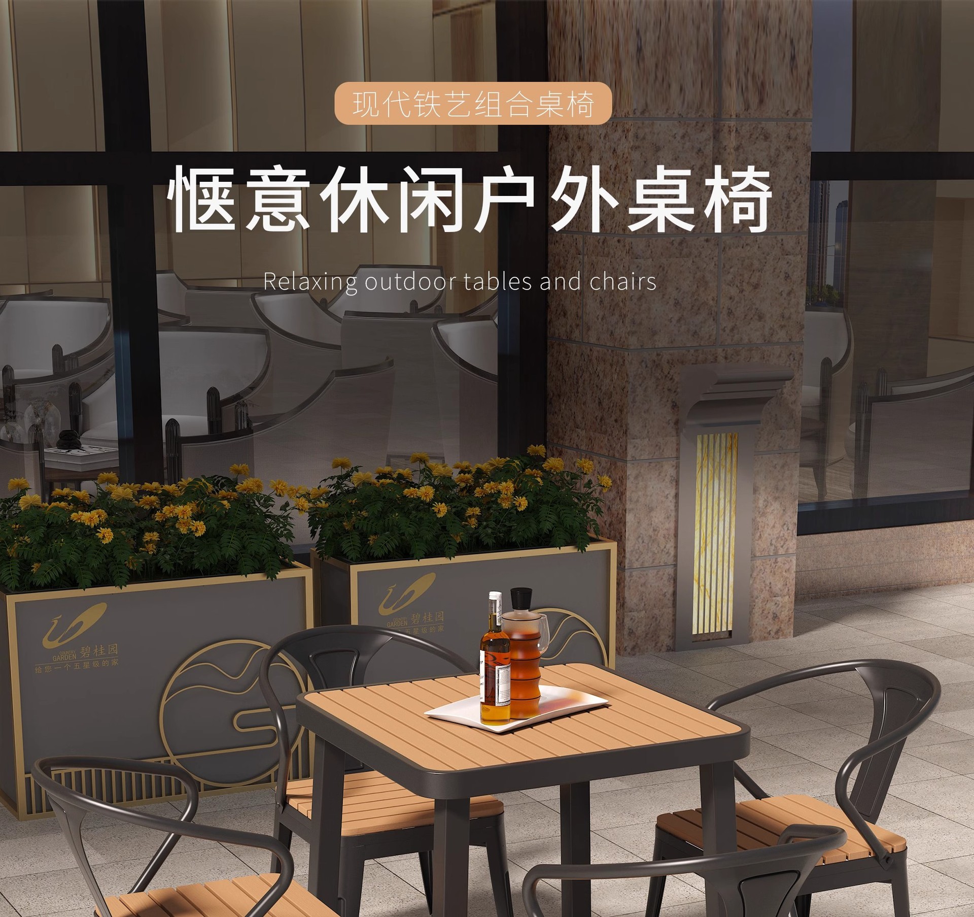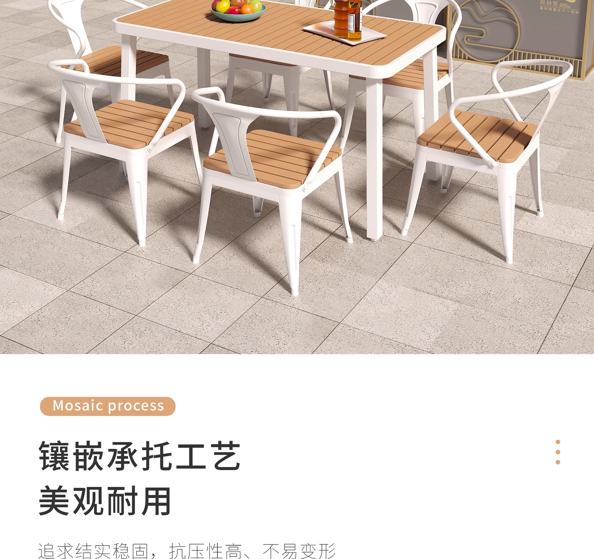 Простые пластиково-деревянные столы и стулья для кафе и рынков