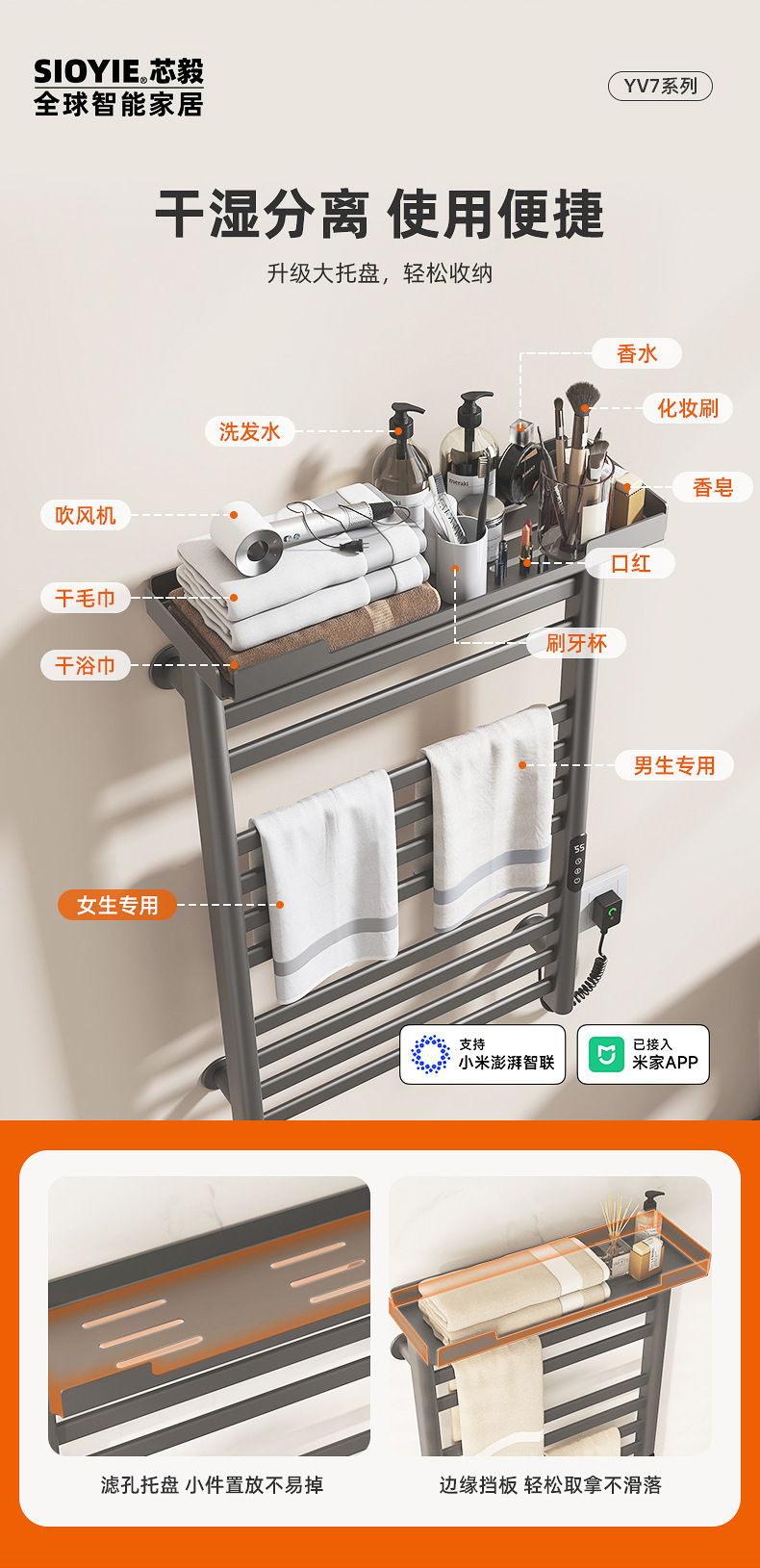Умный электрический полотенцесушитель для ванной комнаты, электрический обогрев, постоянная температура, сушка, карбоновый полотенцесушитель