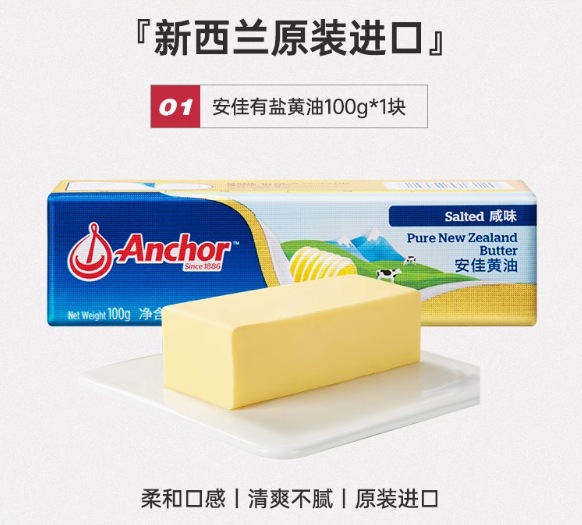 Легкое соленое масло Anjia 100г, импортное сливочное масло для домашней выпечки