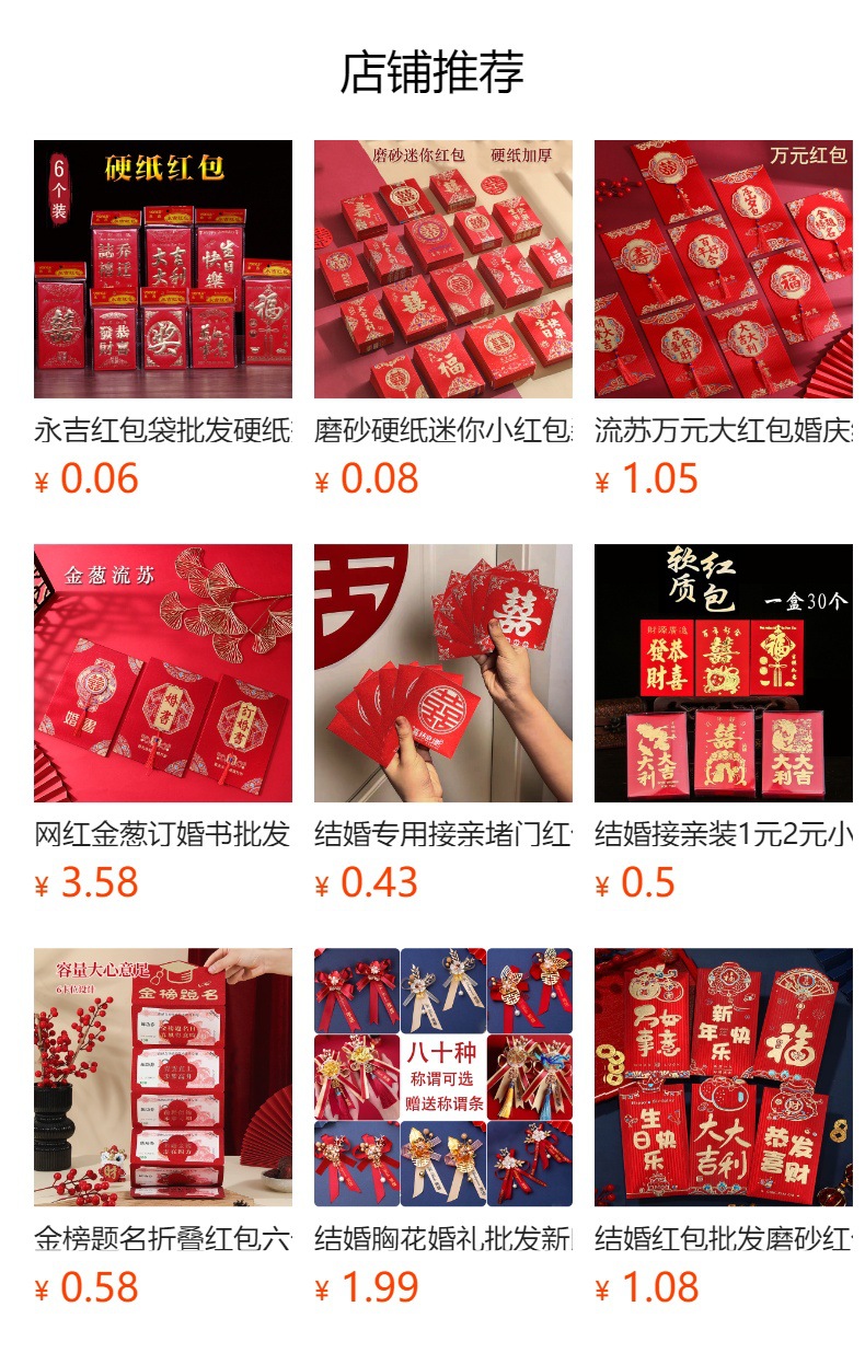 ![]() | Glitter [red envelope] | Ten thousand yuan 12*22cm ten thousand yuan red envelope 1 | ¥0.42 / ≈ 5 ₽ | 0 | 5951258076208 | |