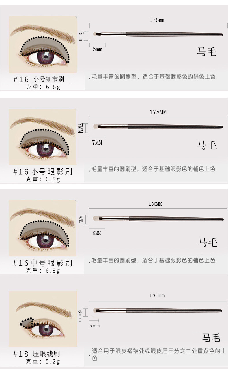 ![]() | Medium eye shadow brush (white horse hair) (packaging bag) | ¥3.0 / ≈ 36 ₽ | 5014 | 5467403652995 | |
