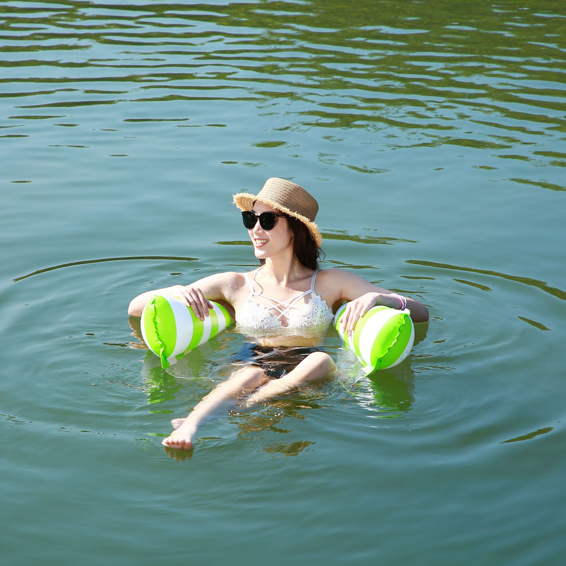 Кросс-бордовый ПВХ надувной водный полосатый плот, складное кресло для отдыха, водная игрушка