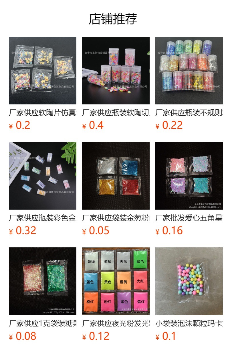 本厂支持定做各种系列软陶片和软陶颗粒,提供1-100g小袋包装,手工瓶子包装和机器封口包装定做具体价格咨询客服量大价格优惠