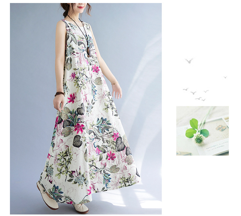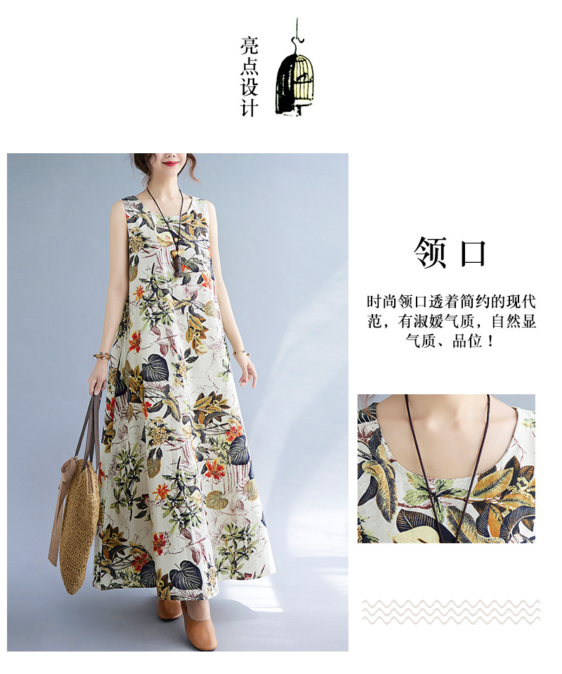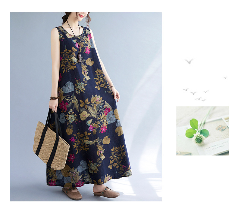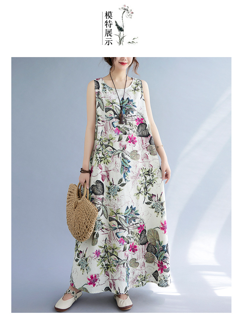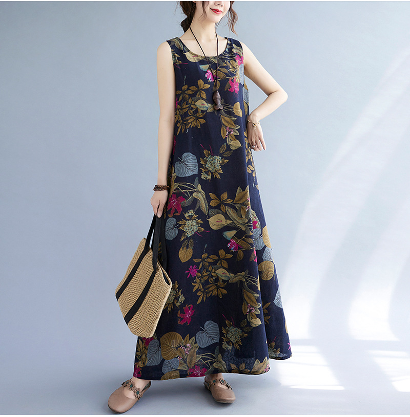 Длинное платье для женщин большого размера летнее винтажное этническое стильное свободное принтованное платье без рукавов из хлопка и льна