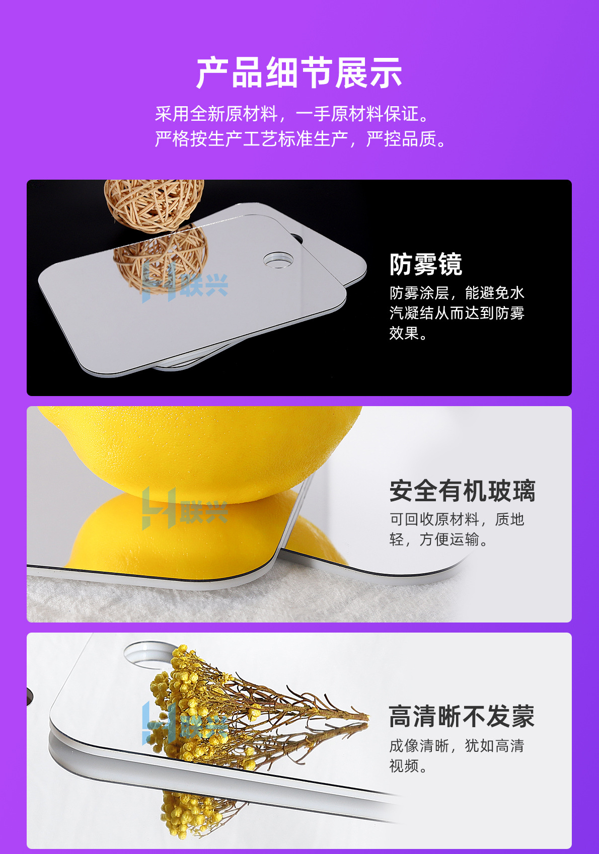 Пластиковое антифог зеркало Индивидуальное 1-5мм Зеркало для макияжа в ванной Пластиковая линза Производитель антифог зеркал