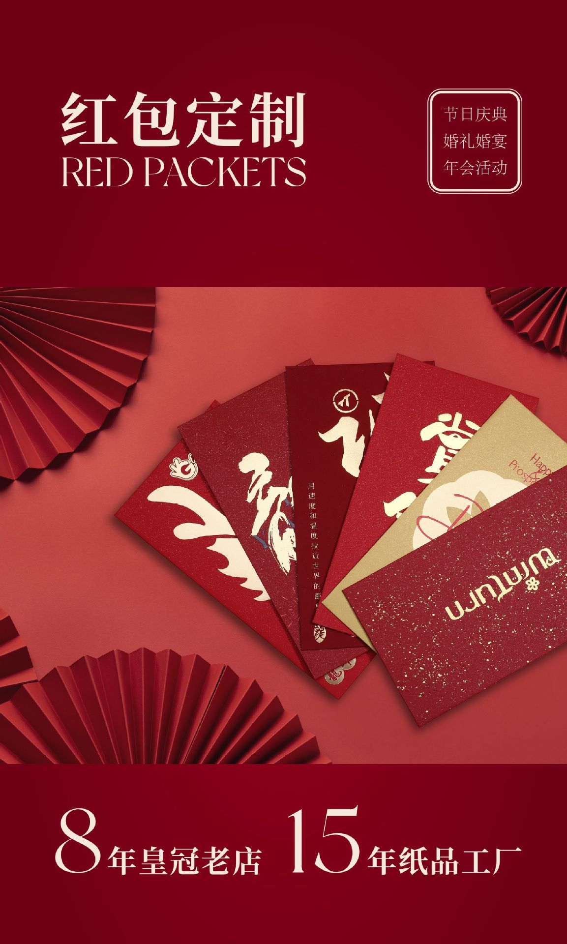 Красные конверты на Новый год 2026 с индивидуальной печатью логотипа, большие свадебные специальные конверты