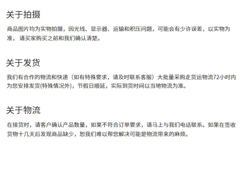 3.本店不包邮地区为:甘肃,宁夏,青海,海南,辽宁,吉林,黑龙江,(四川甘孜,阿坝,凉山),内蒙古,新疆,西藏。下单请联系客服修改运费,可选择物流合作。