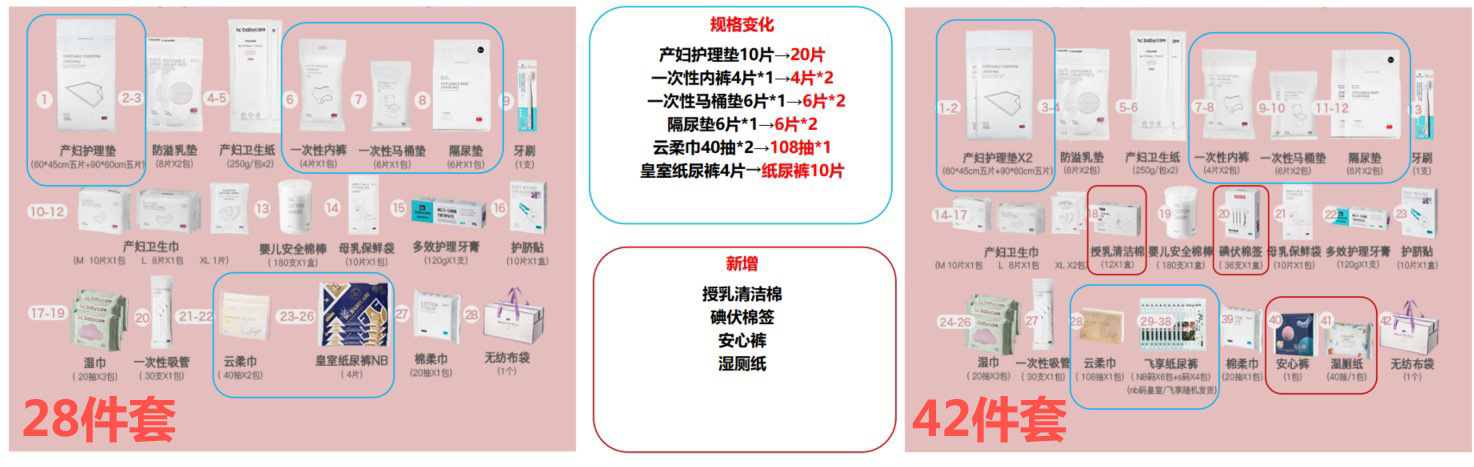 Цветовая классификация 42-piece maternity package set, 32-piece maternity bag set, 28-piece maternity bag set