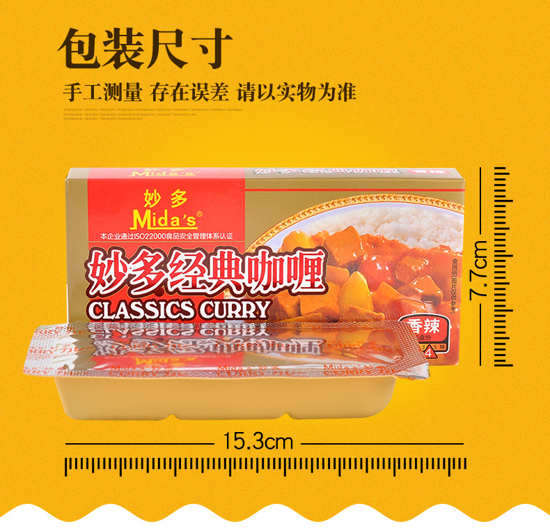 ![]() | [miaoduo] classic curry [spicy flavor] 100g (single box) | ¥6.39 / ≈ 78 ₽ | 276 | 4814805821911 | |