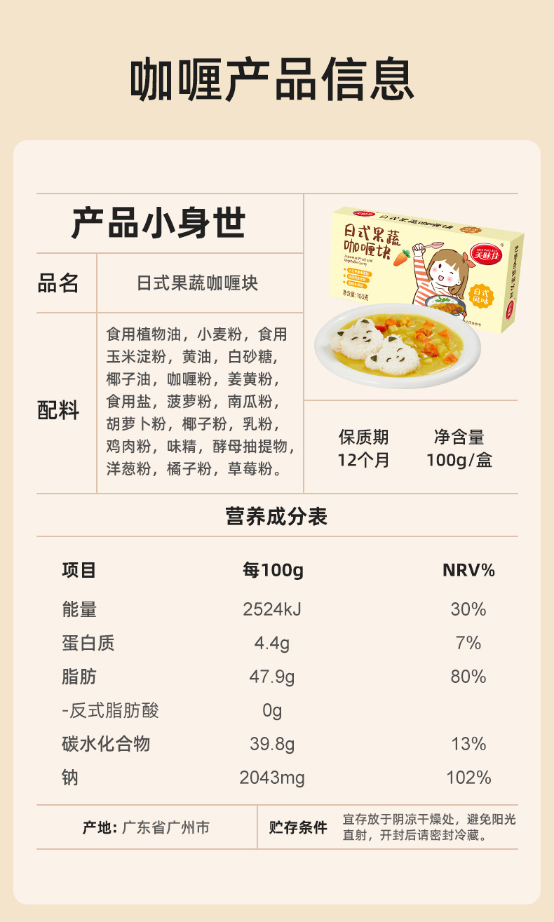 ![]() | Children: fruit and vegetable curry 1 box * 100g | ¥19.9 / ≈ 242 ₽ | 4485021 | 5613247887573 | |