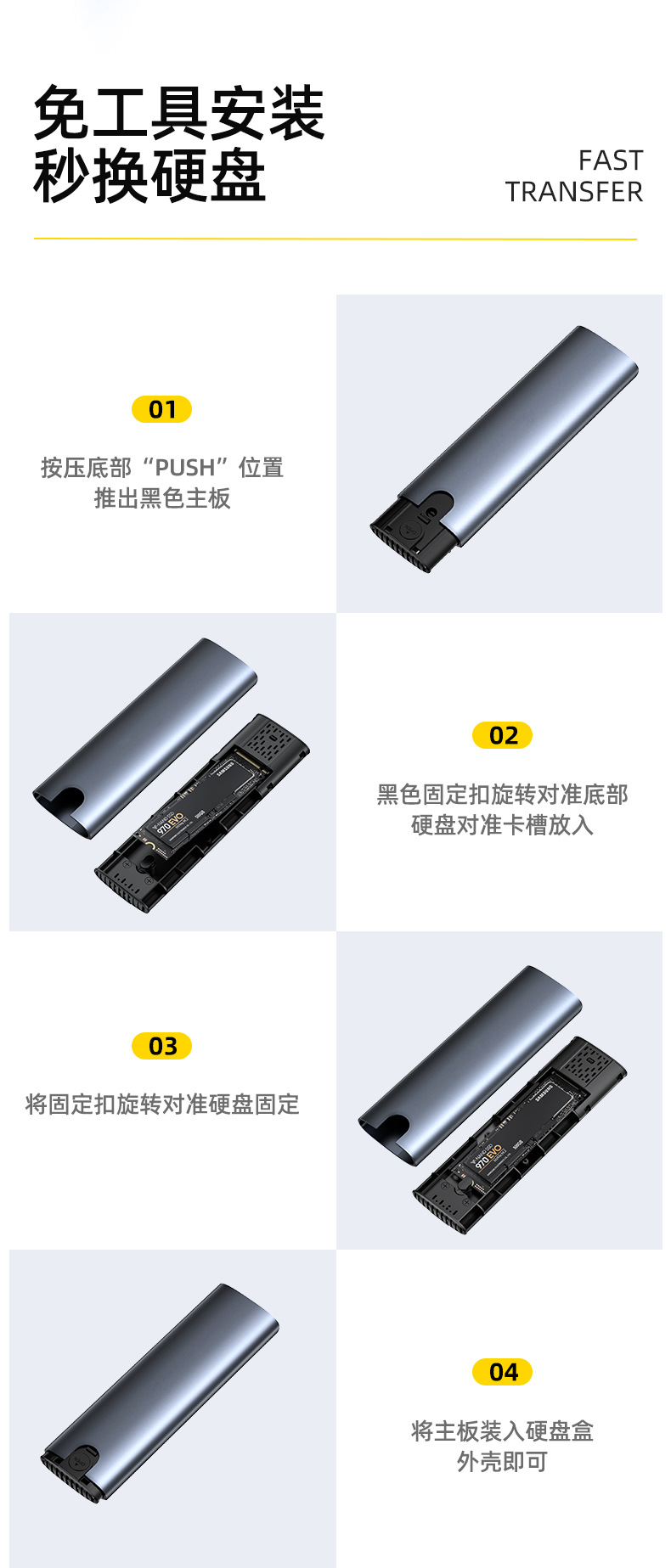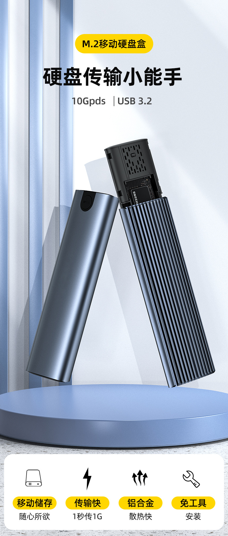 Оптовая коробка для твердотельного диска M.2, двухпротокольная, USB3.1, алюминиевый корпус