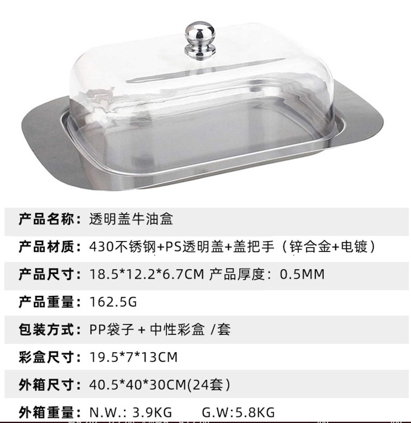 ![]() | 430 all steel butter box with butter knife | ¥18.5 / ≈ 225 ₽ | 160 | 5769176912816 |