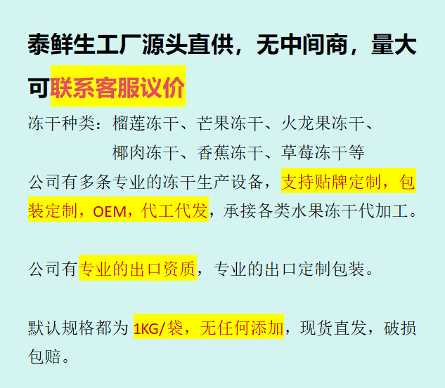 ![]() | Freeze-dried dried durian 1kg (pure a grade) | 1шт: ¥295.00, 10шт: ¥290.00, 100шт: ¥285.00 | 9897 | 5842887312743 |
