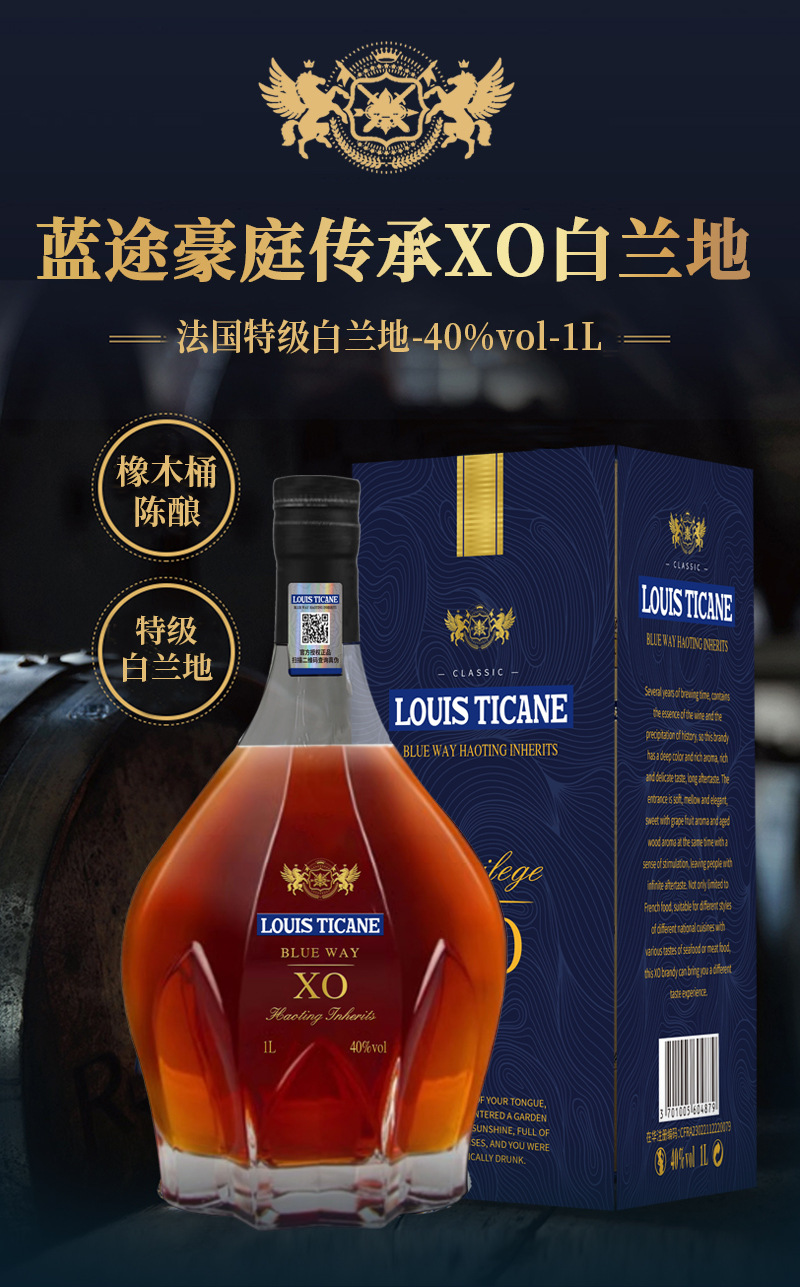 Французский импортный ХО бренди иностранный ликер Louis Ticane Haoting Heritage большая емкость 1000мл полная упаковка подарочная коробка