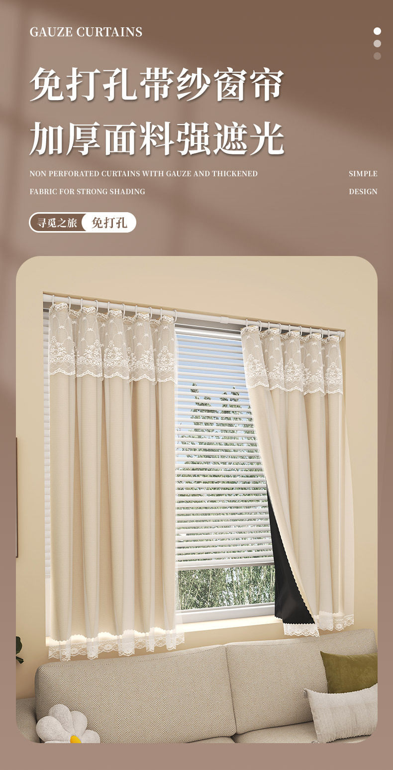Популярные шторы без пробивания с полюсом для арендованных домов, утолщенные шторы для общежития, шторы для плавающего окна