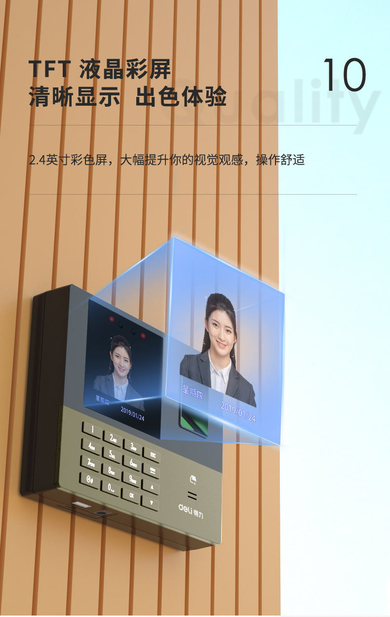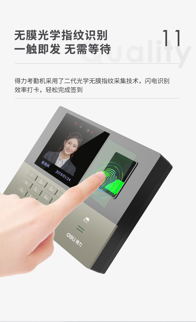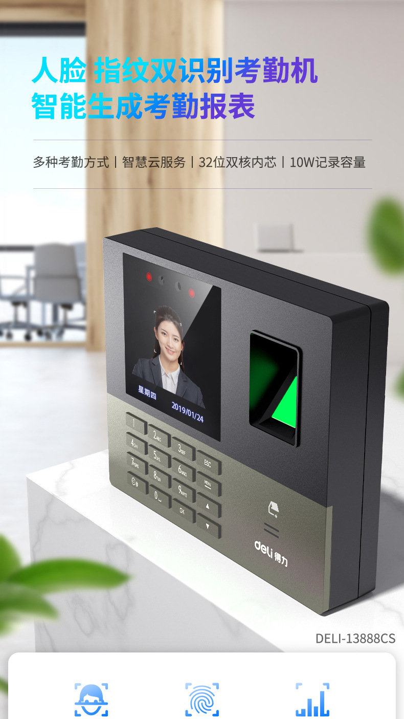 Deli 13888CS Машина для учета рабочего времени с распознаванием лиц, вход сотрудников, умный рабочий карточный пин, отпечаток пальца