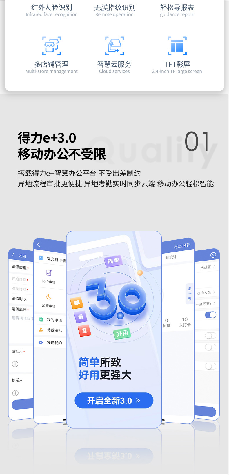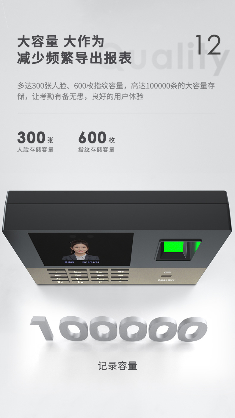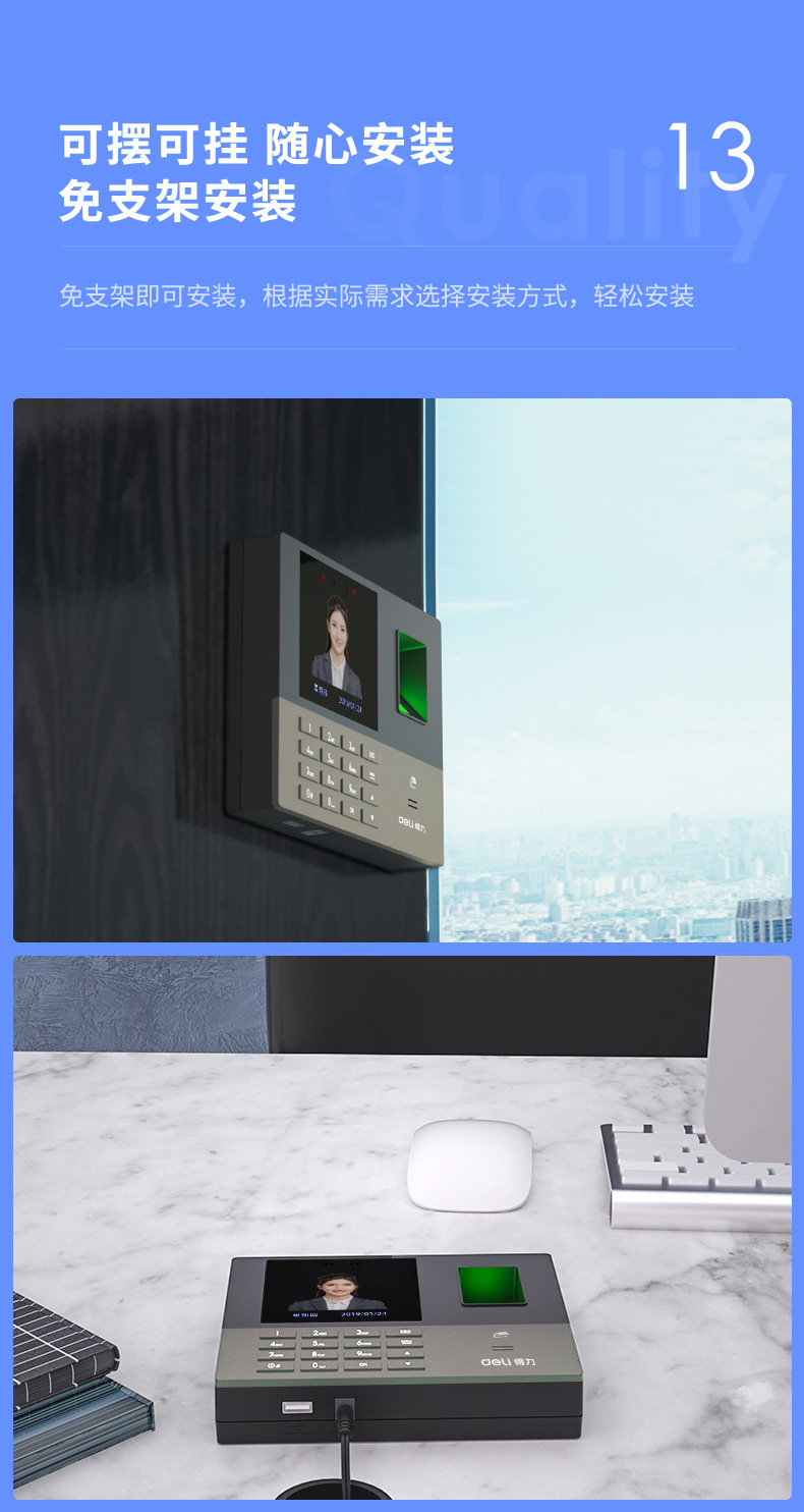 Deli 13888CS Машина для учета рабочего времени с распознаванием лиц, вход сотрудников, умный рабочий карточный пин, отпечаток пальца