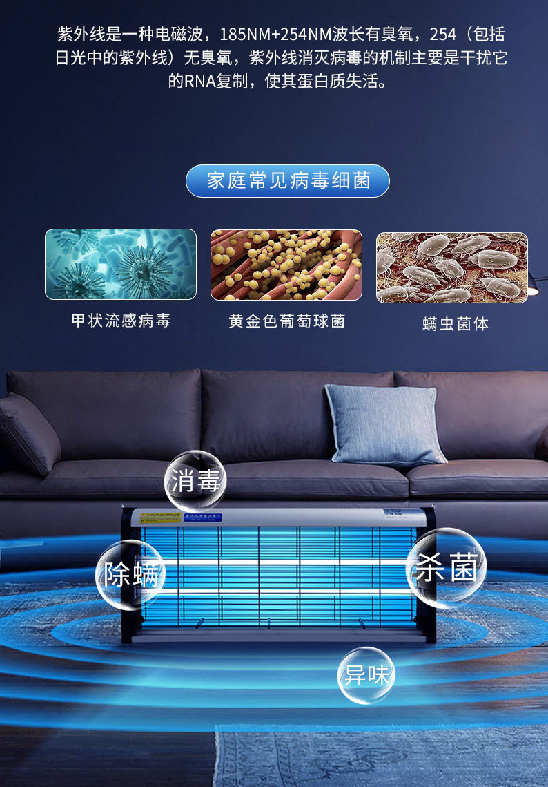 Коммерческая и бытовая УФ-лампа, настенная, для дезинфекции с озоном, удаление клещей